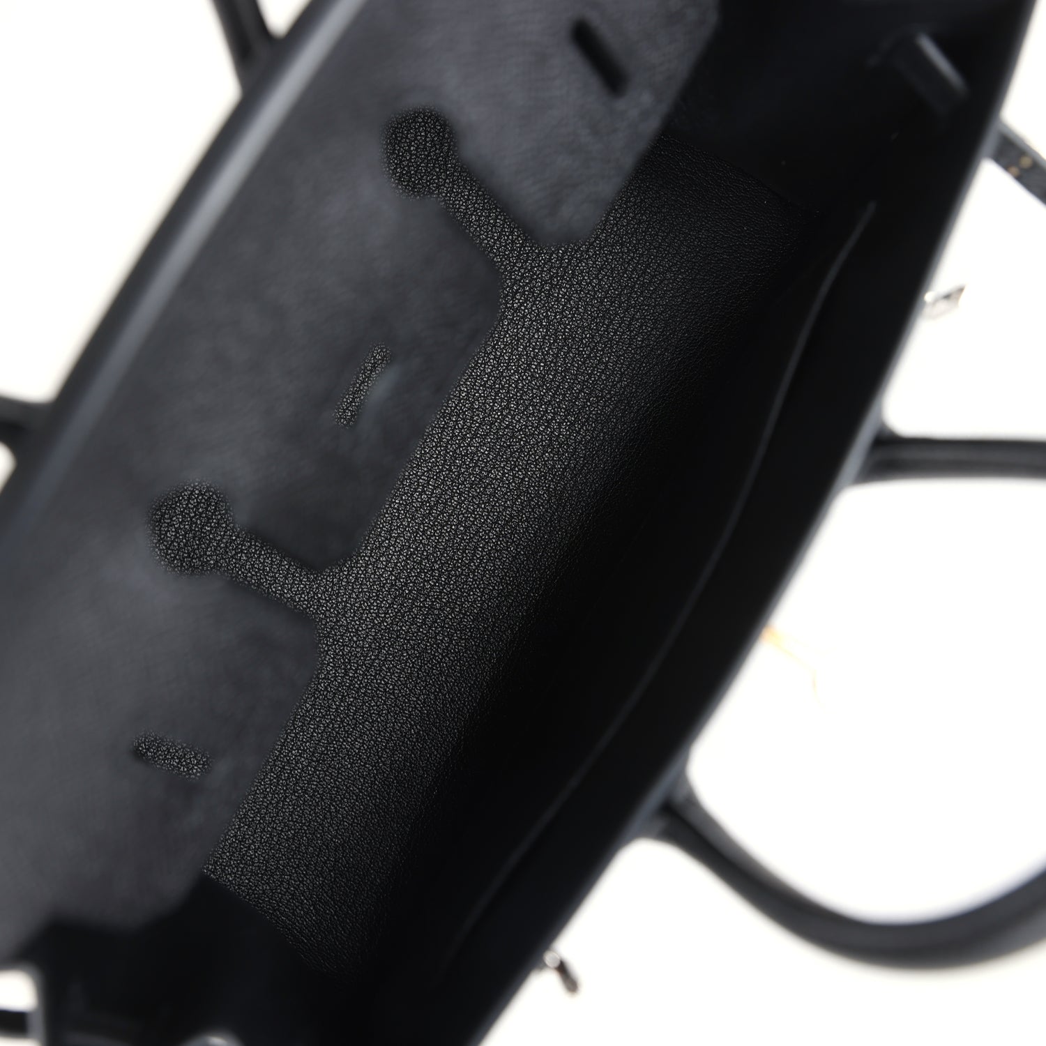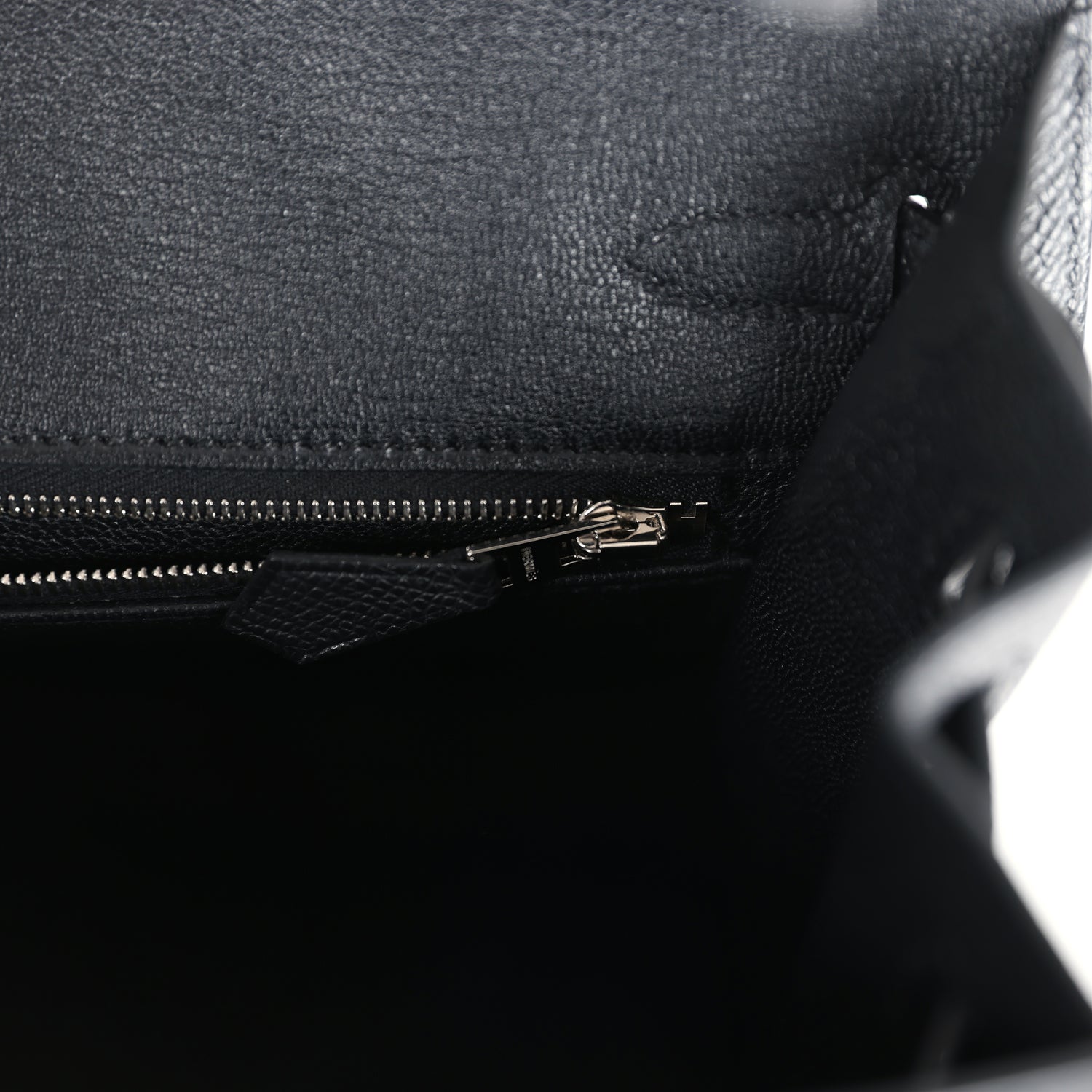 The interior is lined with Black chevre leather and has one zip pocket with an Hermes engraved zipper pull and an open pocket on the opposite side.