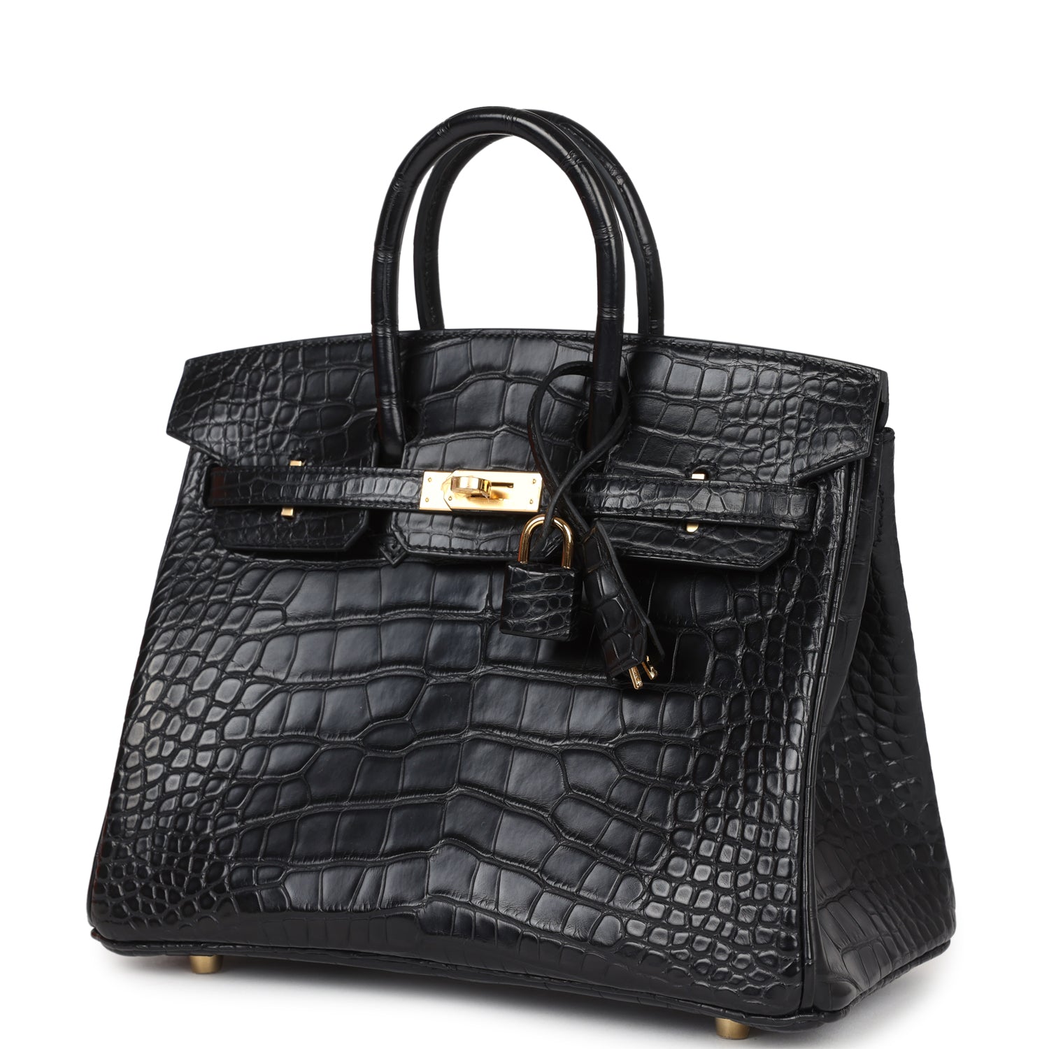 Hermes Birkin 25 Black Matte Alligator Gold Hardware