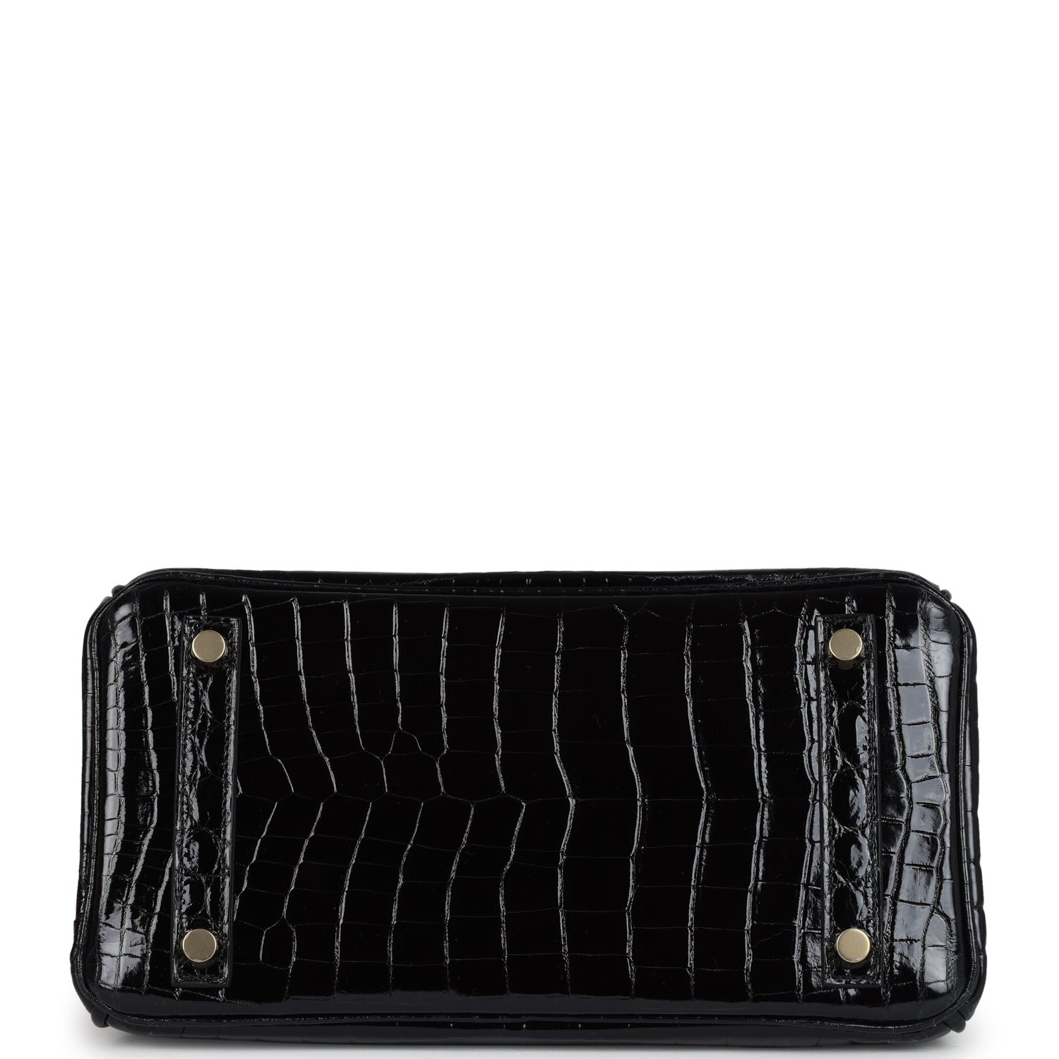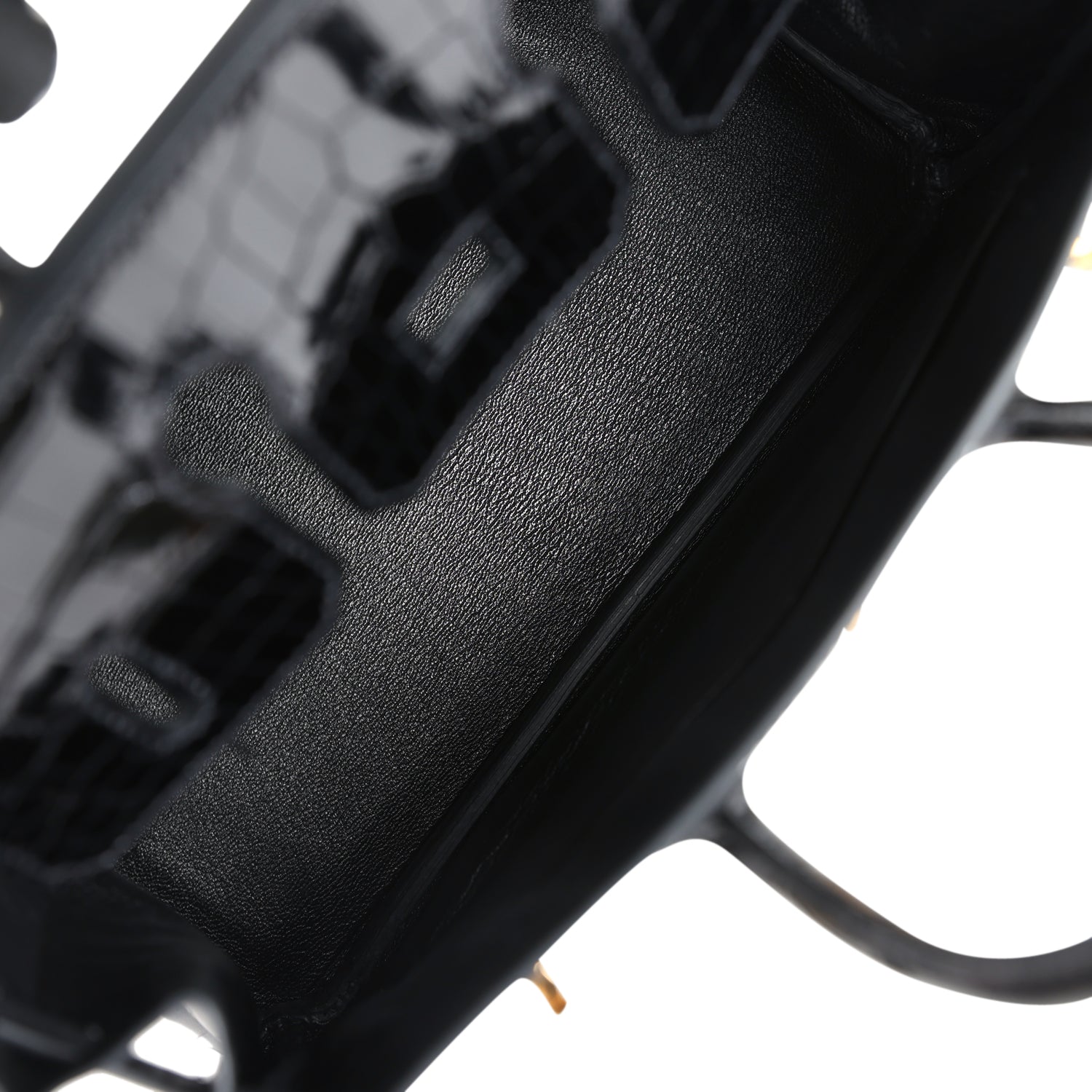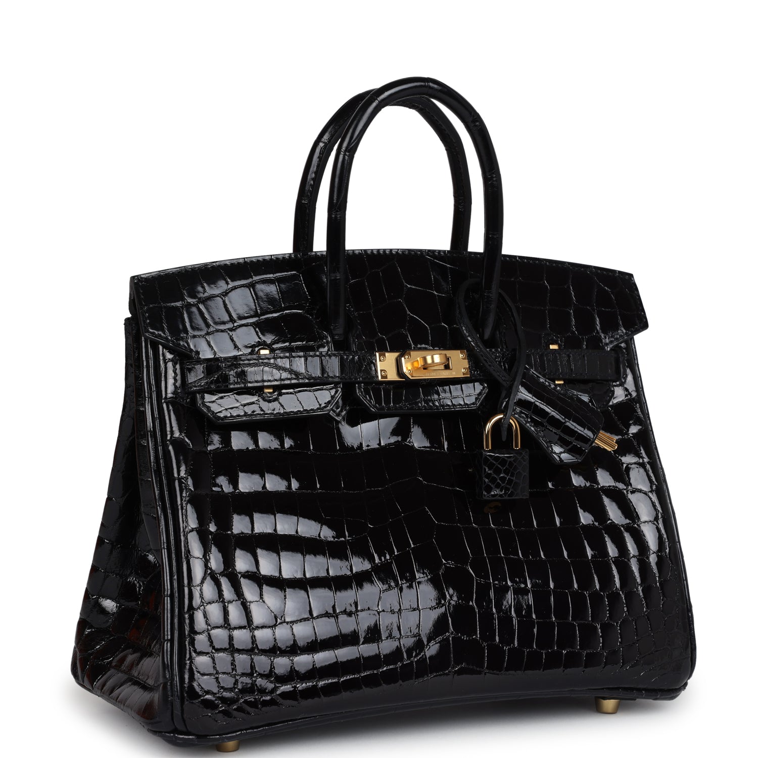 Hermes Birkin 25 Black Shiny Niloticus Crocodile Gold Hardware