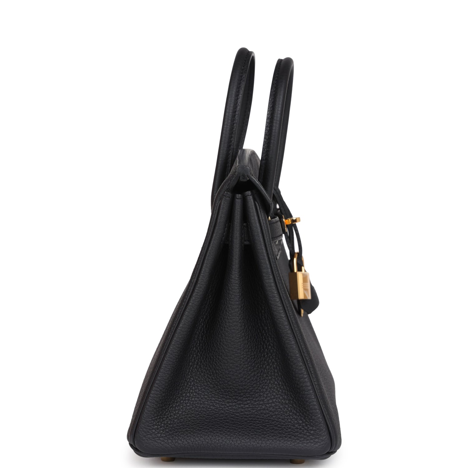 This Birkin is in Black togo leather with gold hardware and has tonal stitching, front flap, two straps with center toggle closure, clochette with lock and two keys, and double rolled handles.