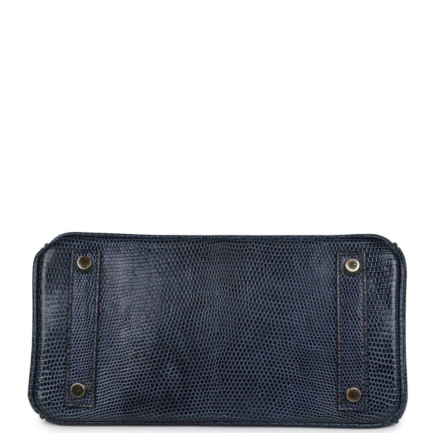 This Birkin is in Bleu De Malte Varanus Niloticus Lizard leather with gold hardware and has tonal stitching, front strap, two straps with center toggle closure, clochette with lock and two keys and double rolled handles.