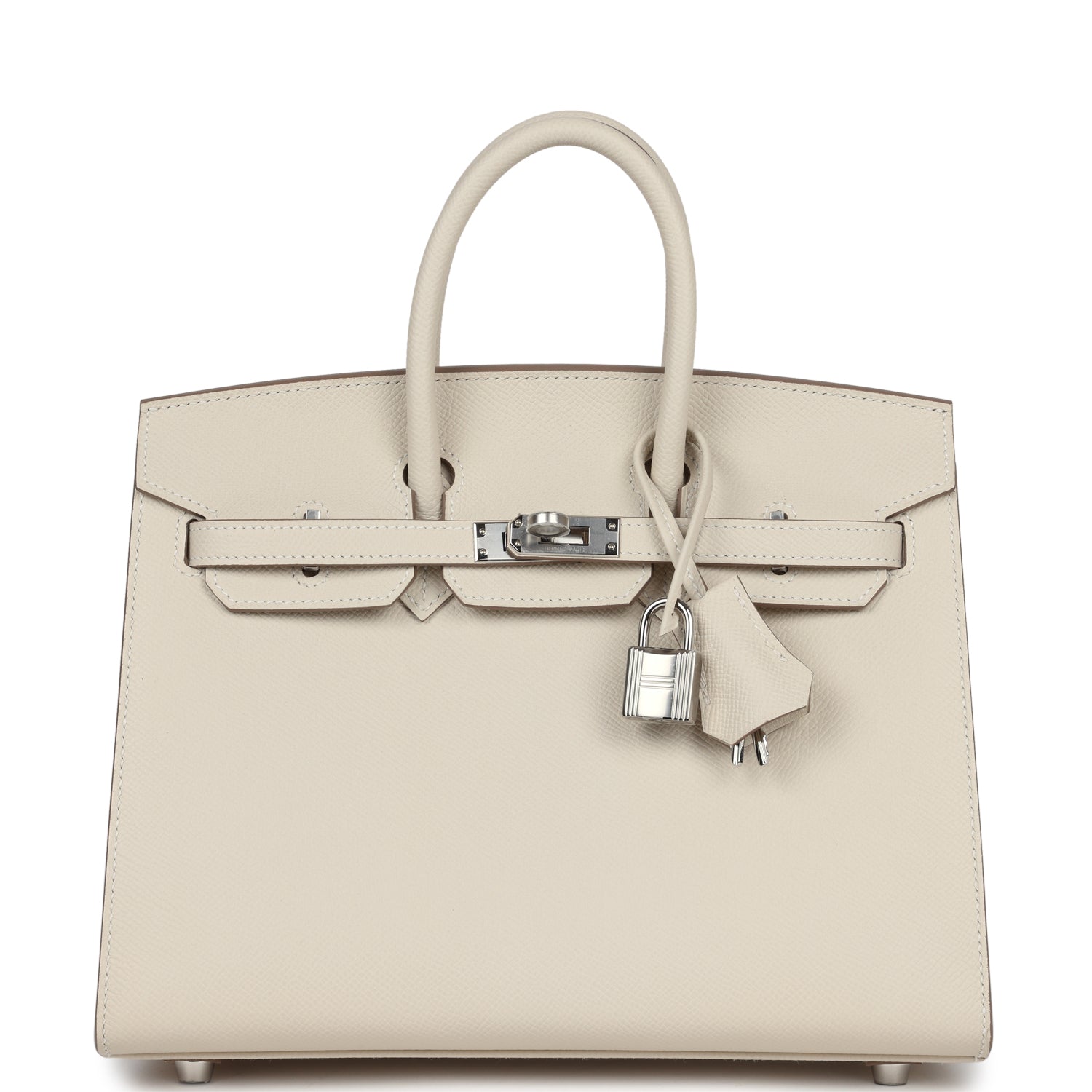 Hermes Birkin Sellier 25 Craie Epsom Palladium Hardware
