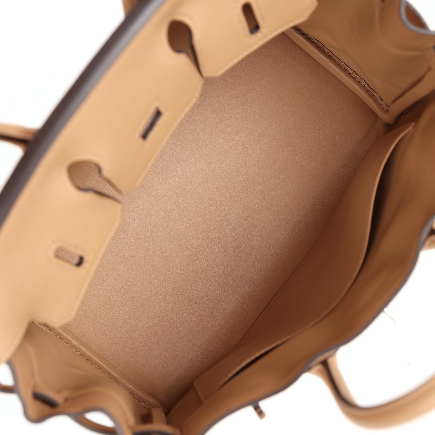 This Birkin is in Toile H and Chai Swift swift with palladium hardware, featuring tonal stitching, front flap, two straps with center toggle closure, clochette with lock and two keys, and double rolled handles.