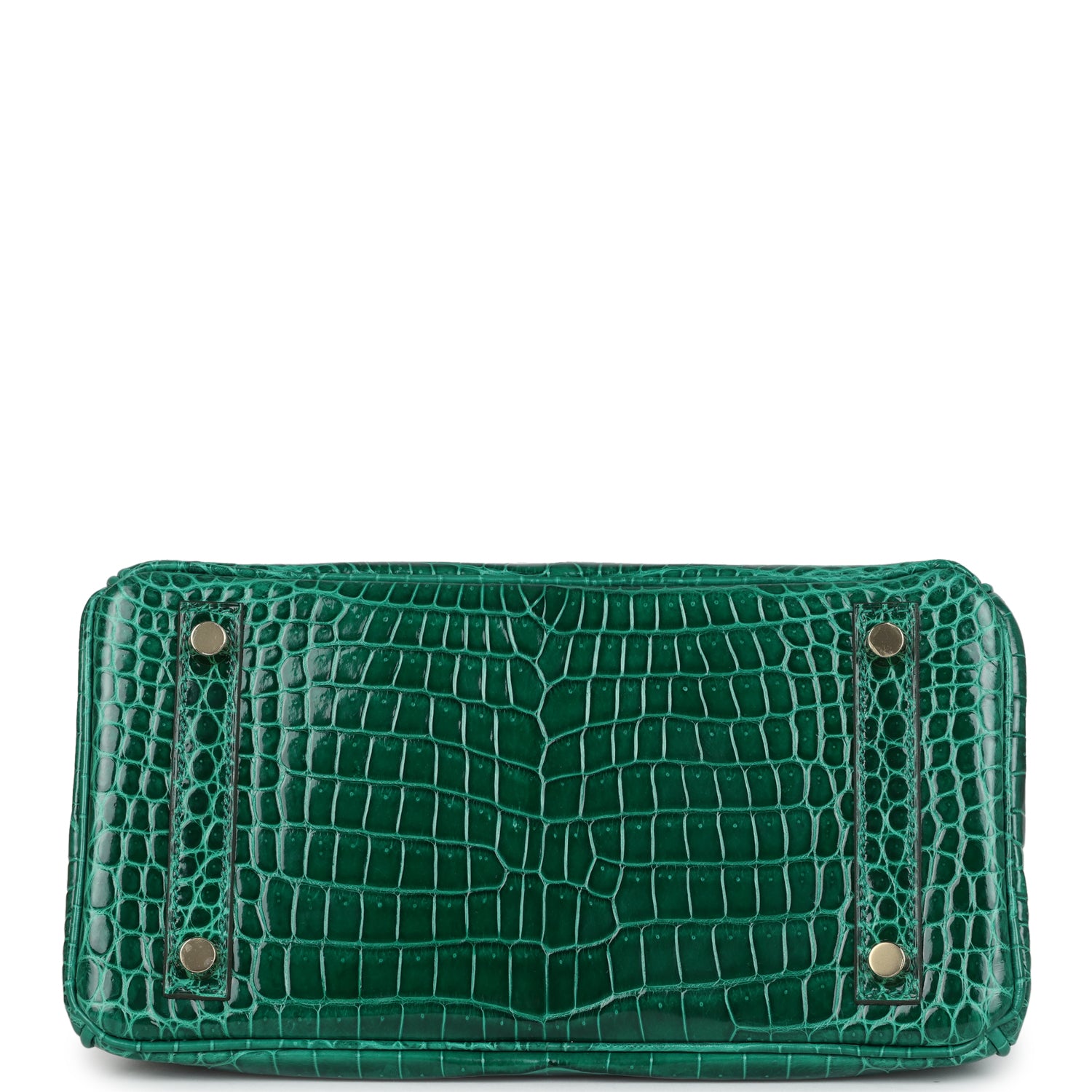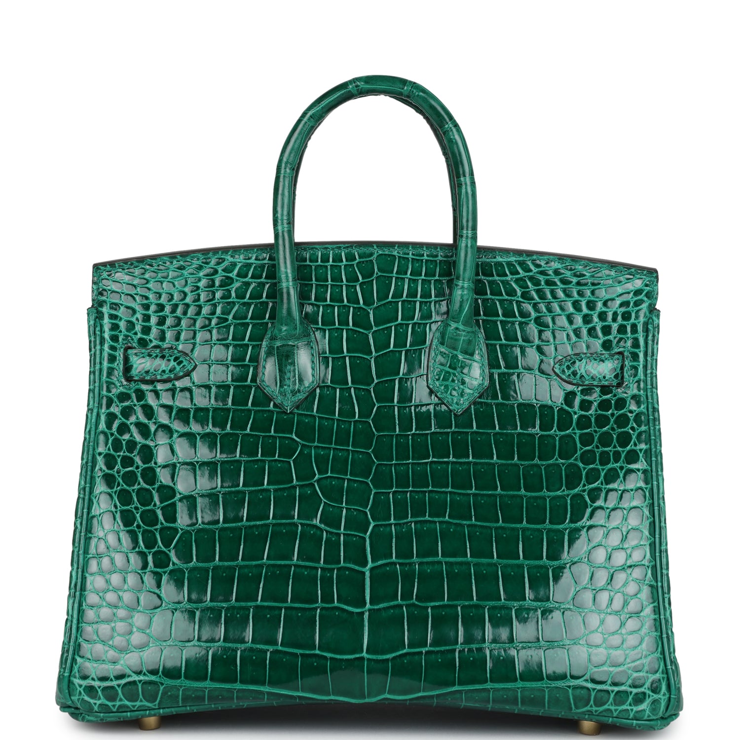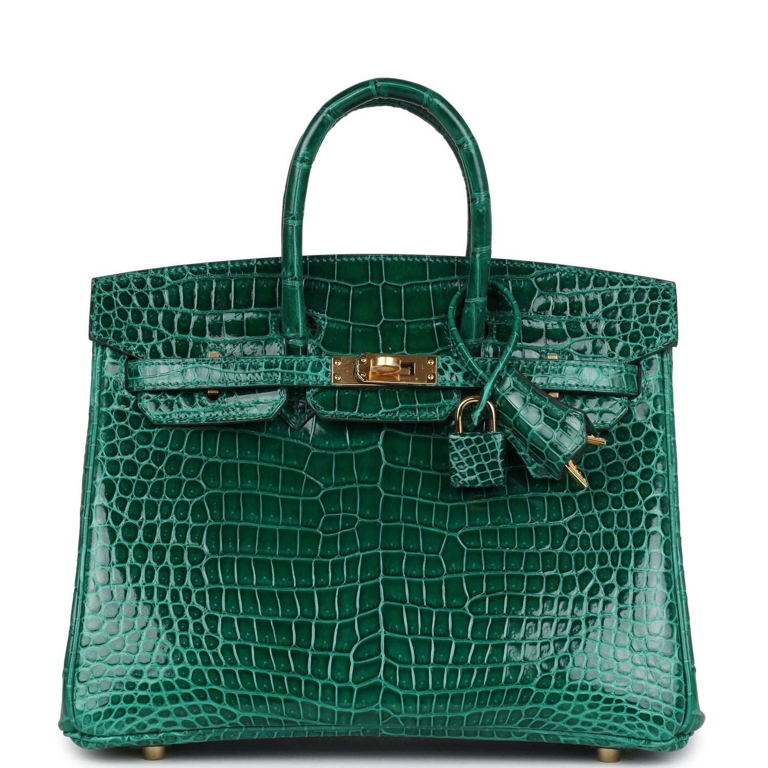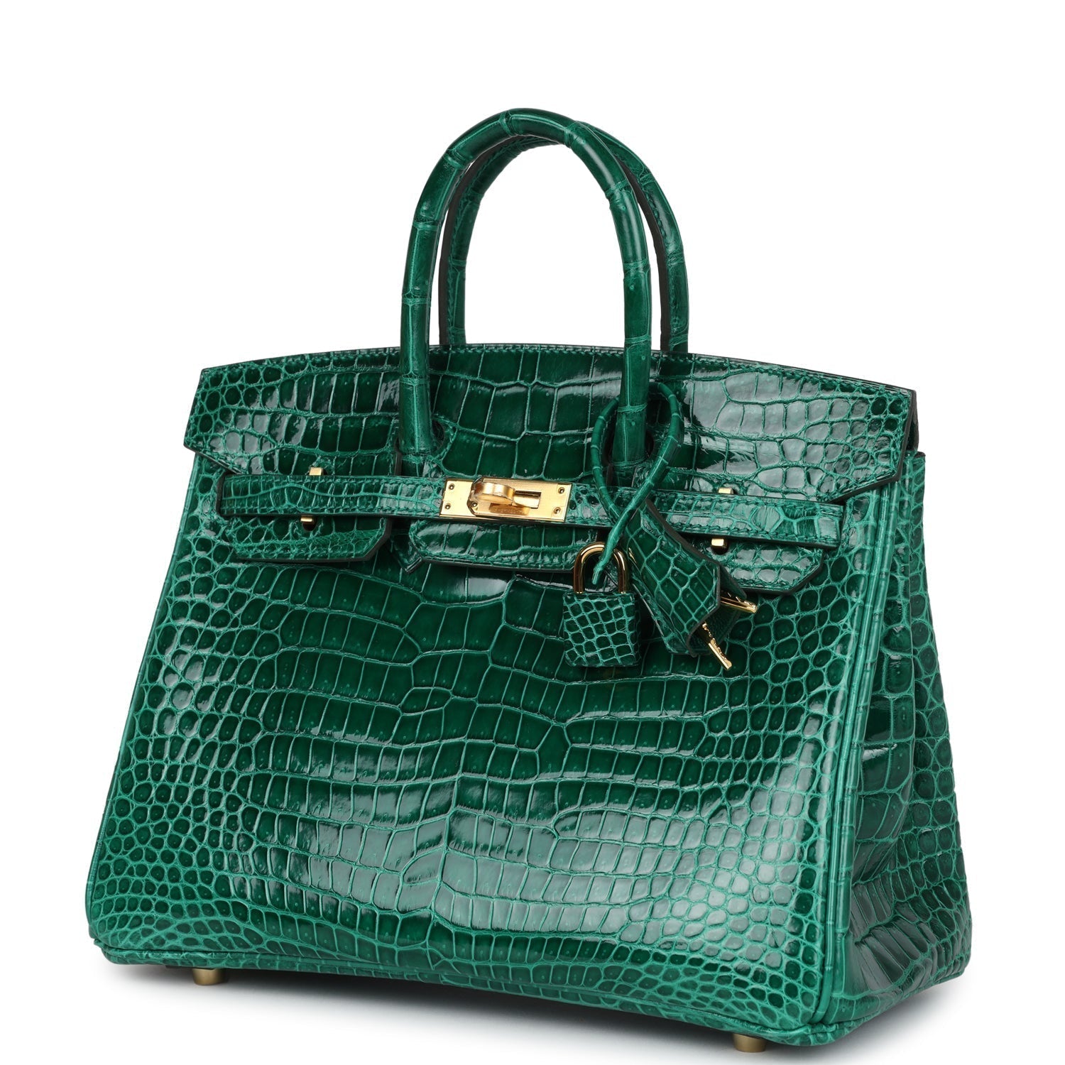 Hermes Birkin 25 Emerald Shiny Porosus Crocodile Gold Hardware