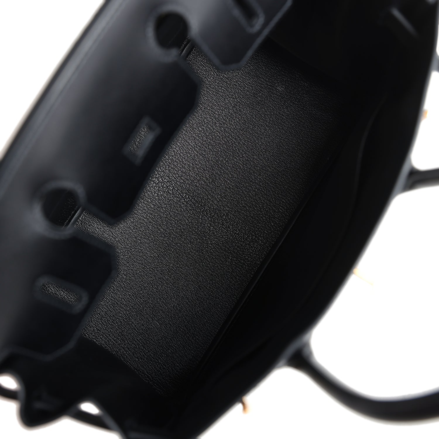 This Birkin is in Black boxcalf leather with gold hardware and has tonal stitching, front flap, two straps with center toggle closure, clochette with lock and two keys, and double rolled handles.