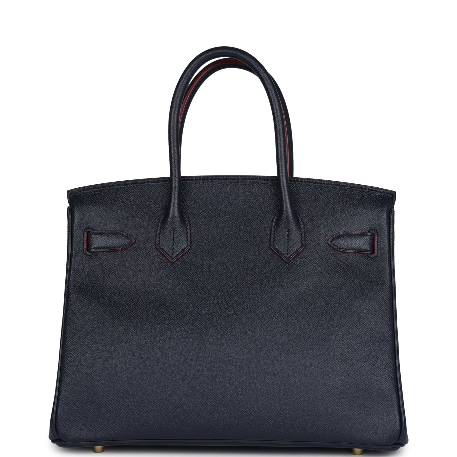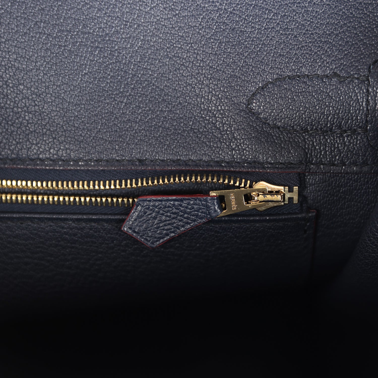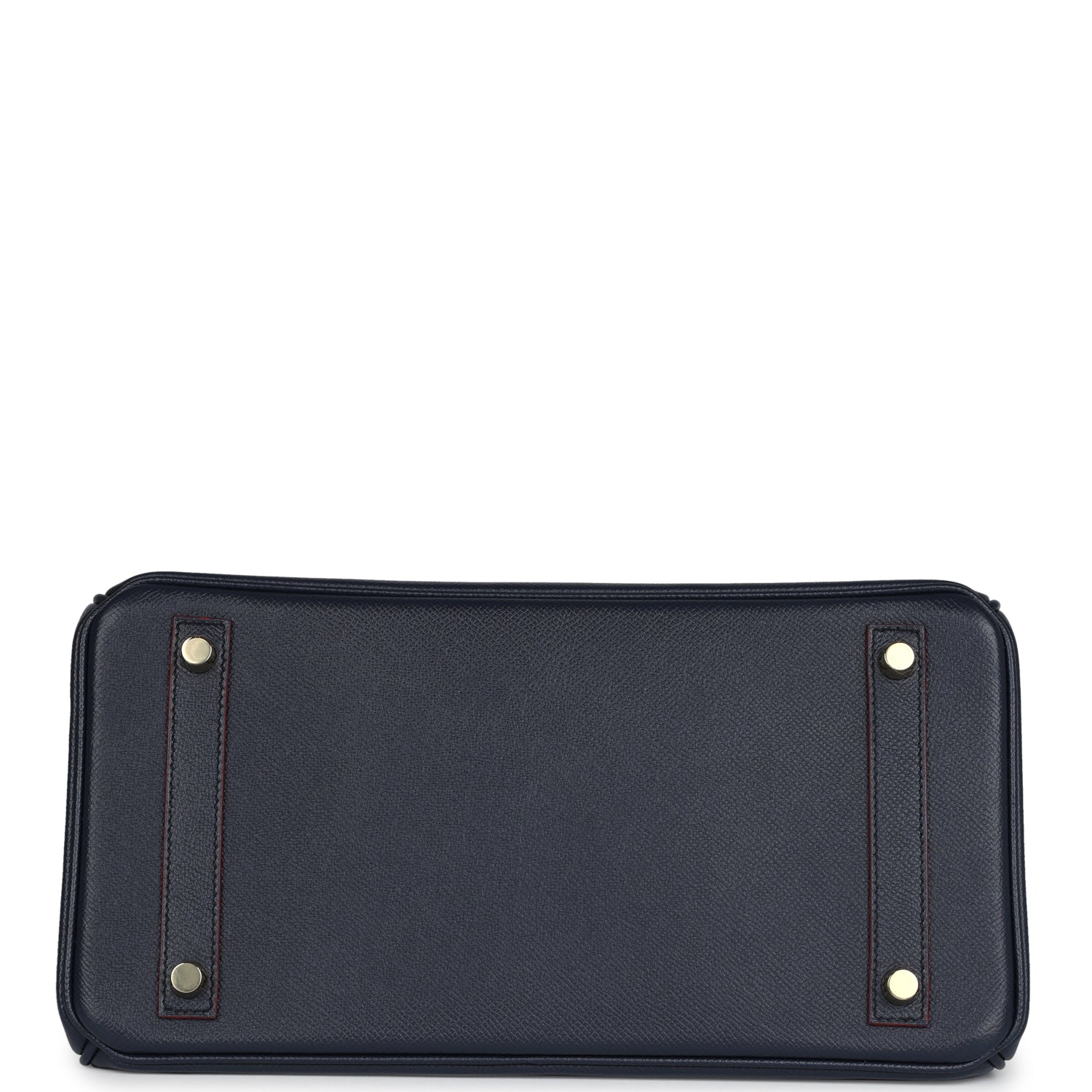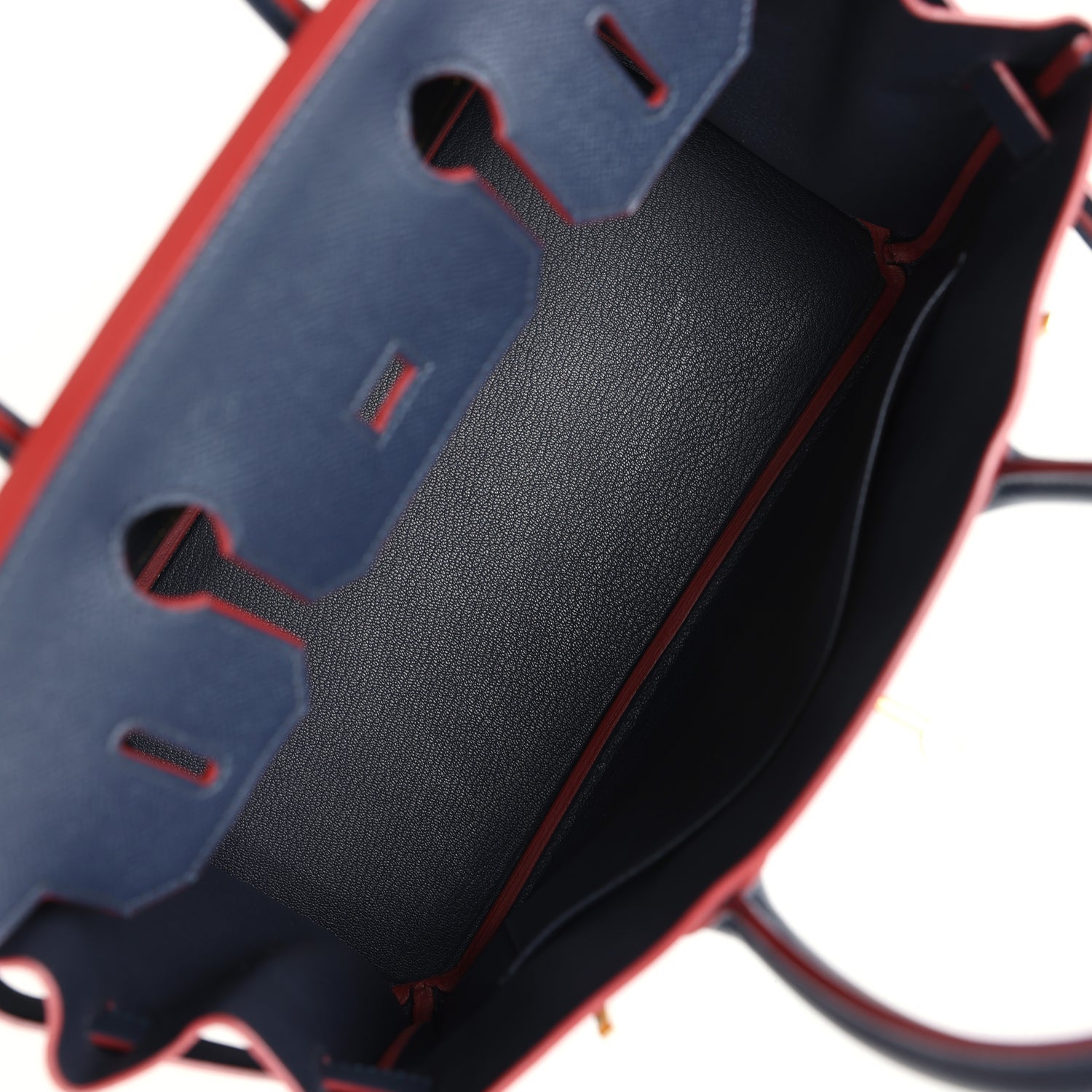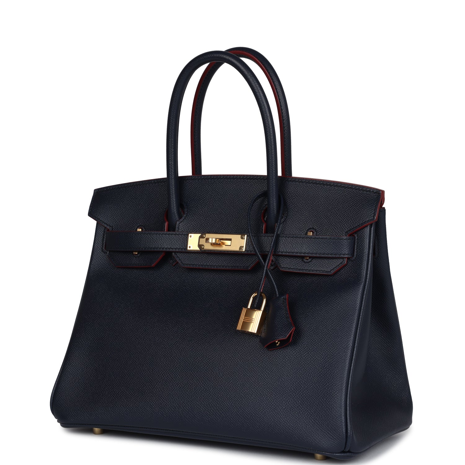 Hermes Birkin 30 Bleu Indigo and Rouge H Contour Epsom Gold Hardware