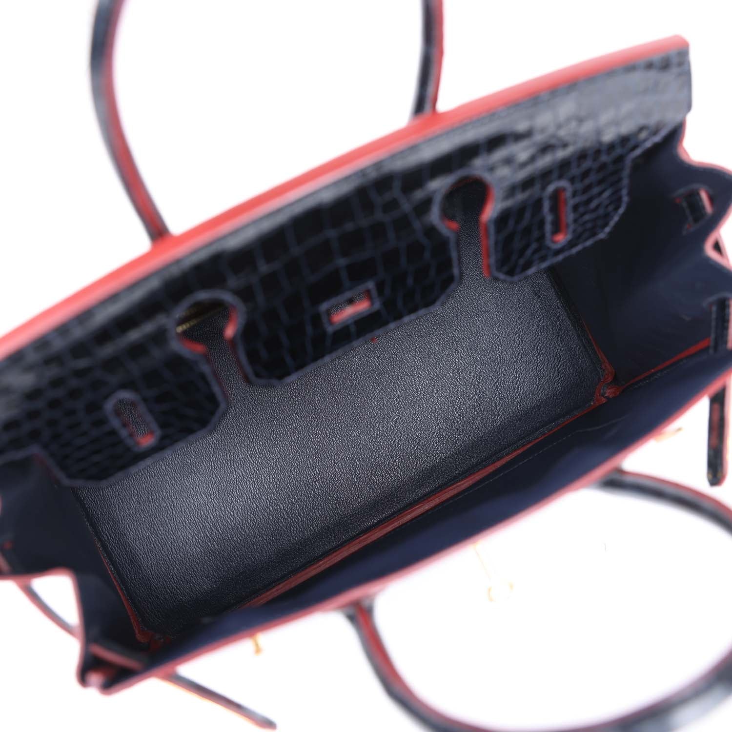 Hermes Birkin 30 Bleu Marine and Rouge H Contour Shiny Porosus Crocodile Gold Hardware