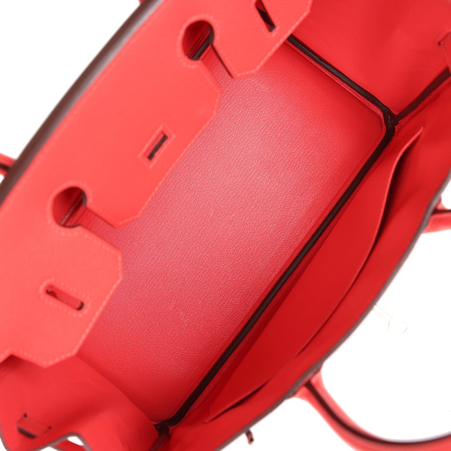 The interior is lined with Rose Jaipur chevre and has one zip pocket with an Hermes engraved zipper pull and an open pocket on the opposite side.
