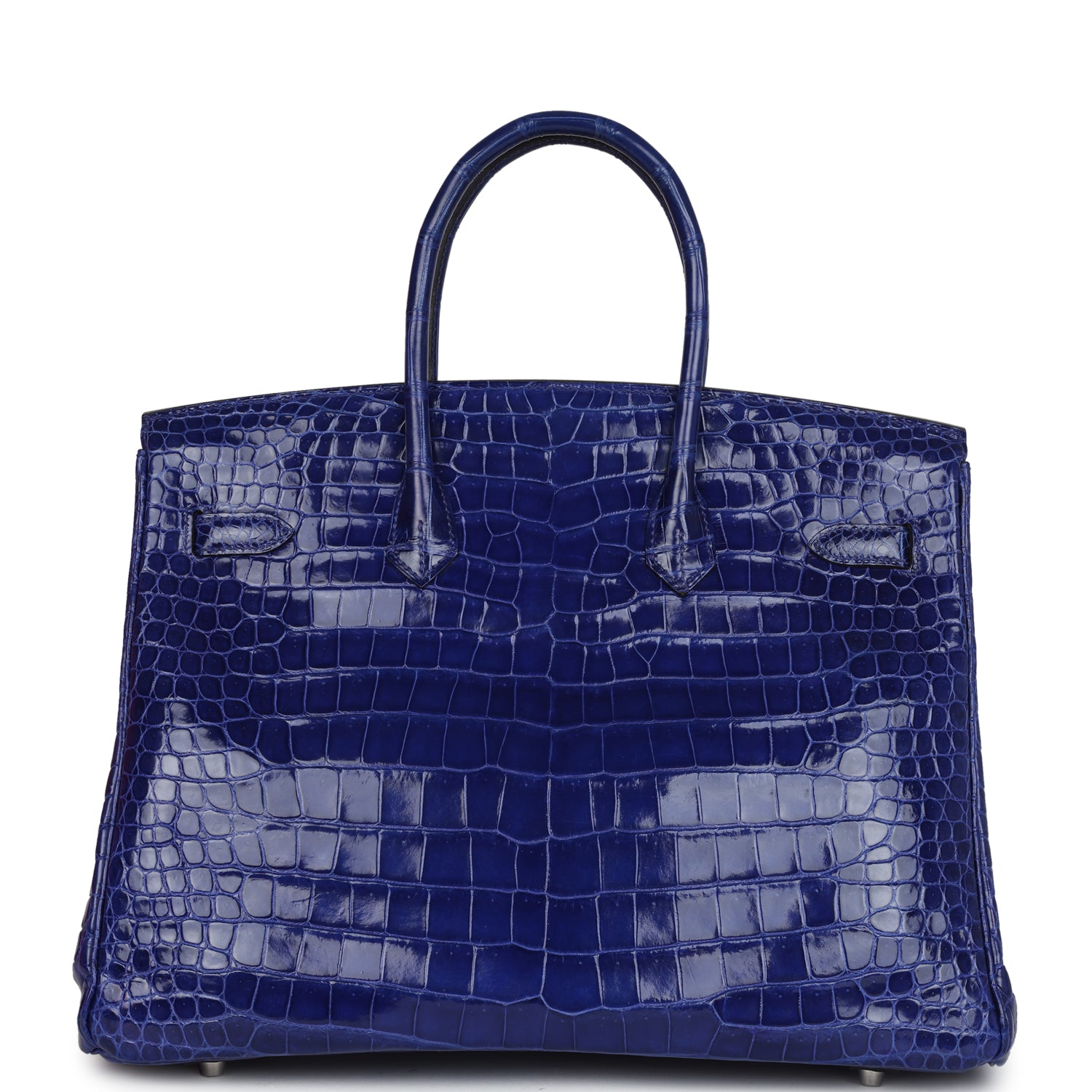 Hermes Birkin 35 Bleu Electric Shiny Porosus Crocodile Palladium Hardware