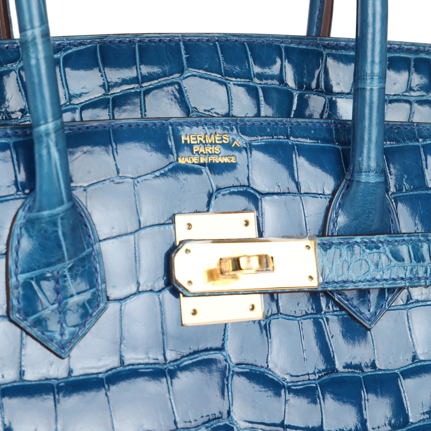 Hermes Birkin 35 Bleu Mykonos Shiny Porosus Crocodile Gold Hardware