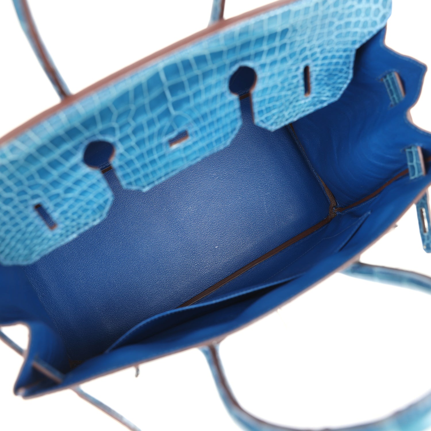 Hermes Birkin 35 Bleu Mykonos Shiny Porosus Crocodile Palladium Hardware
