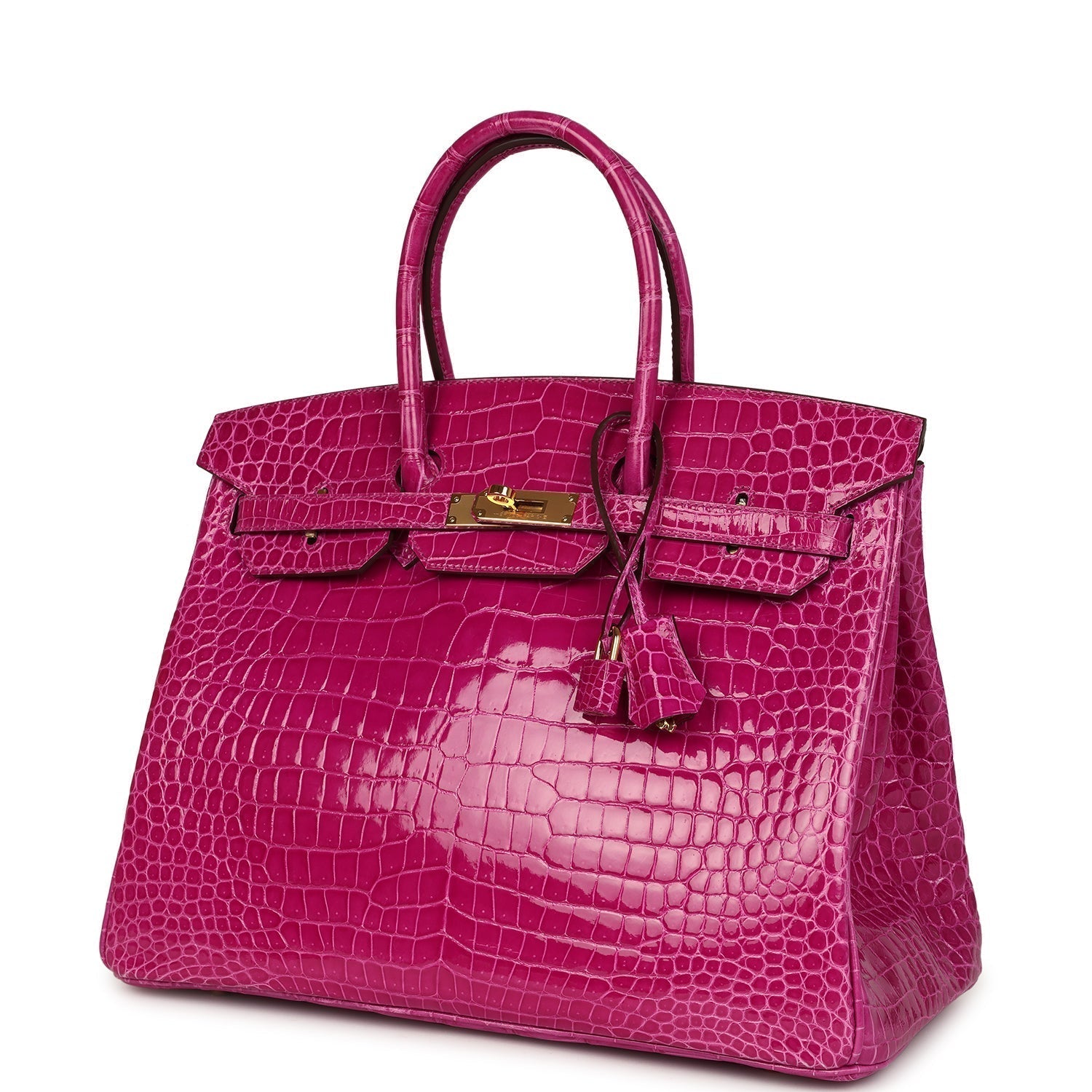 Hermes Birkin 35 Rose Scheherazade Shiny Porosus Crocodile Gold Hardware