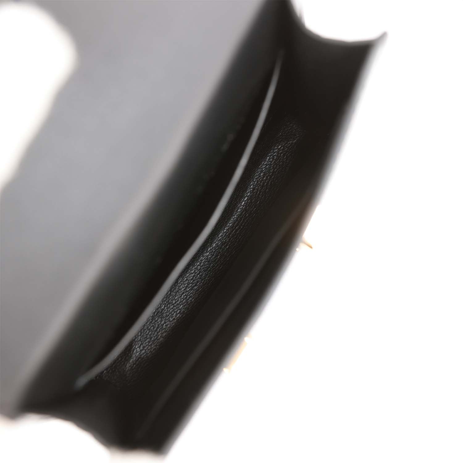 The interior is lined with Black chevre leather and features one slip pocket on the rear wall and one on the front wall.
