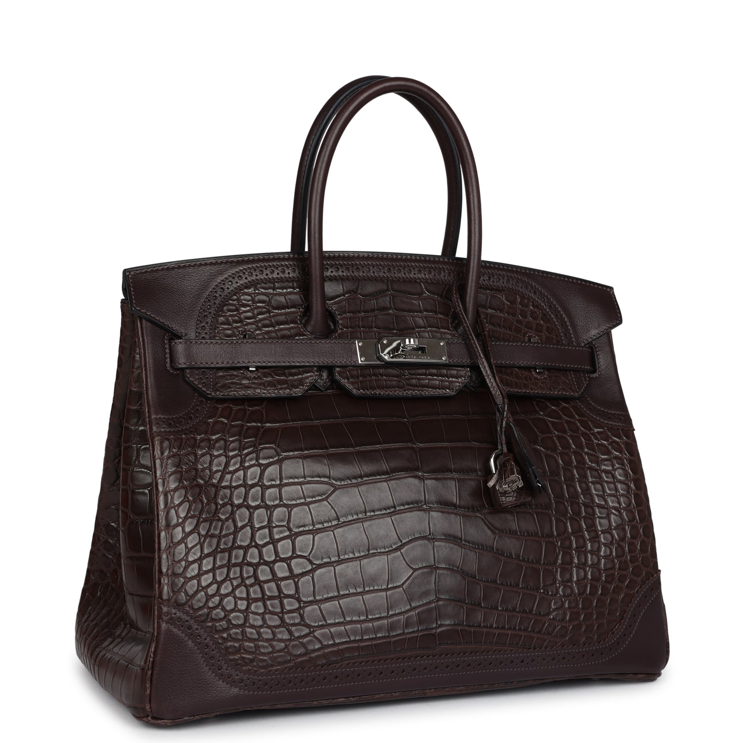 Hermes Ghillies Birkin 35 Ebene Matte Alligator and Swift Palladium Hardware