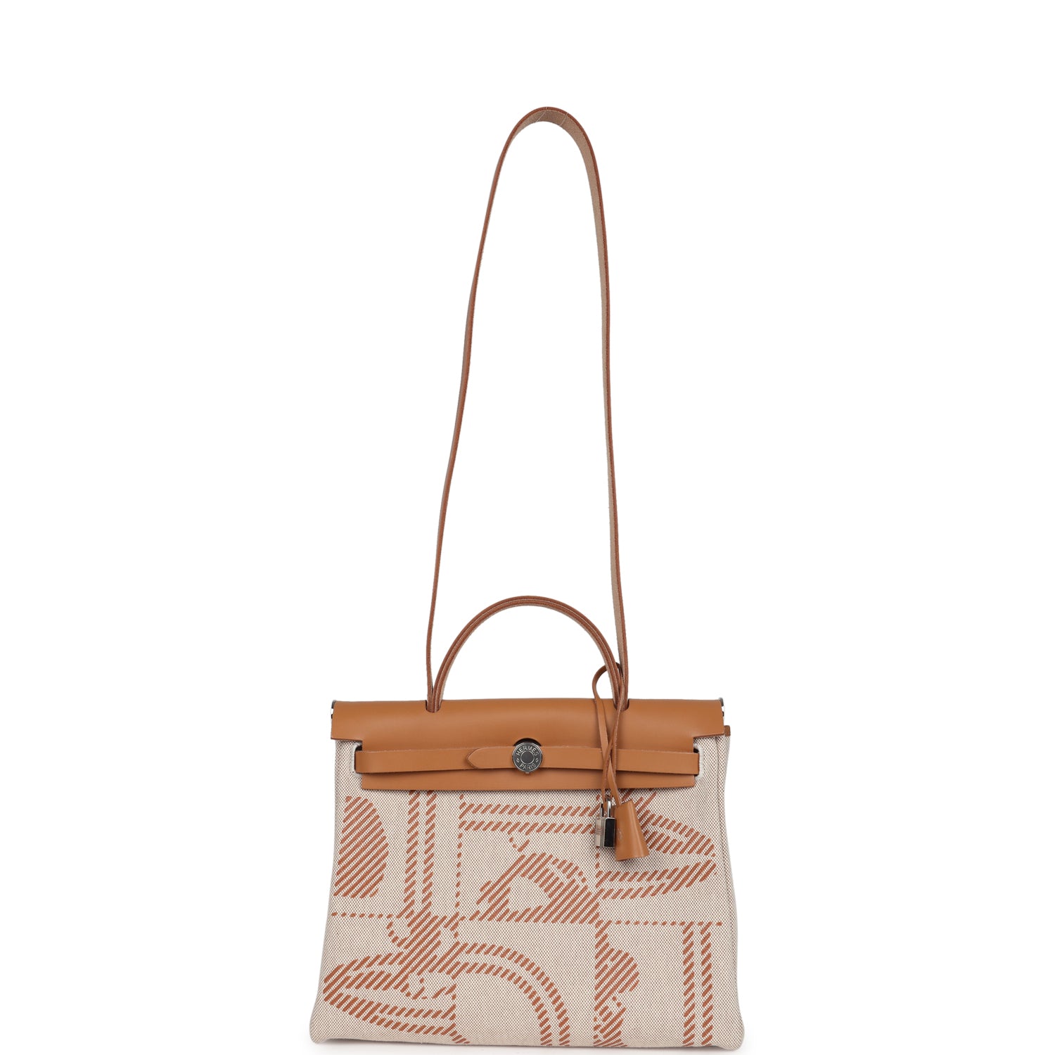 Hermes Herbag Zip PM 31 'Brides de Gala' Natural Sable Berline Hunter and Ecru Toile H Canvas Palladium Hardware