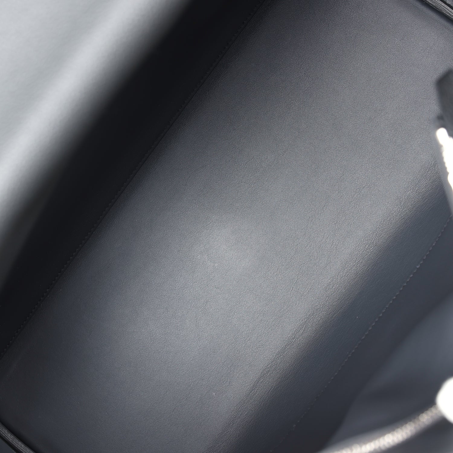 The interior is lined in Plomb swift leather and has one zip pocket with Hermes engraved pull and one open pocket on rear wall. There's also one zip pocket on the back exterior of the bag with an Hermes engraved pull.