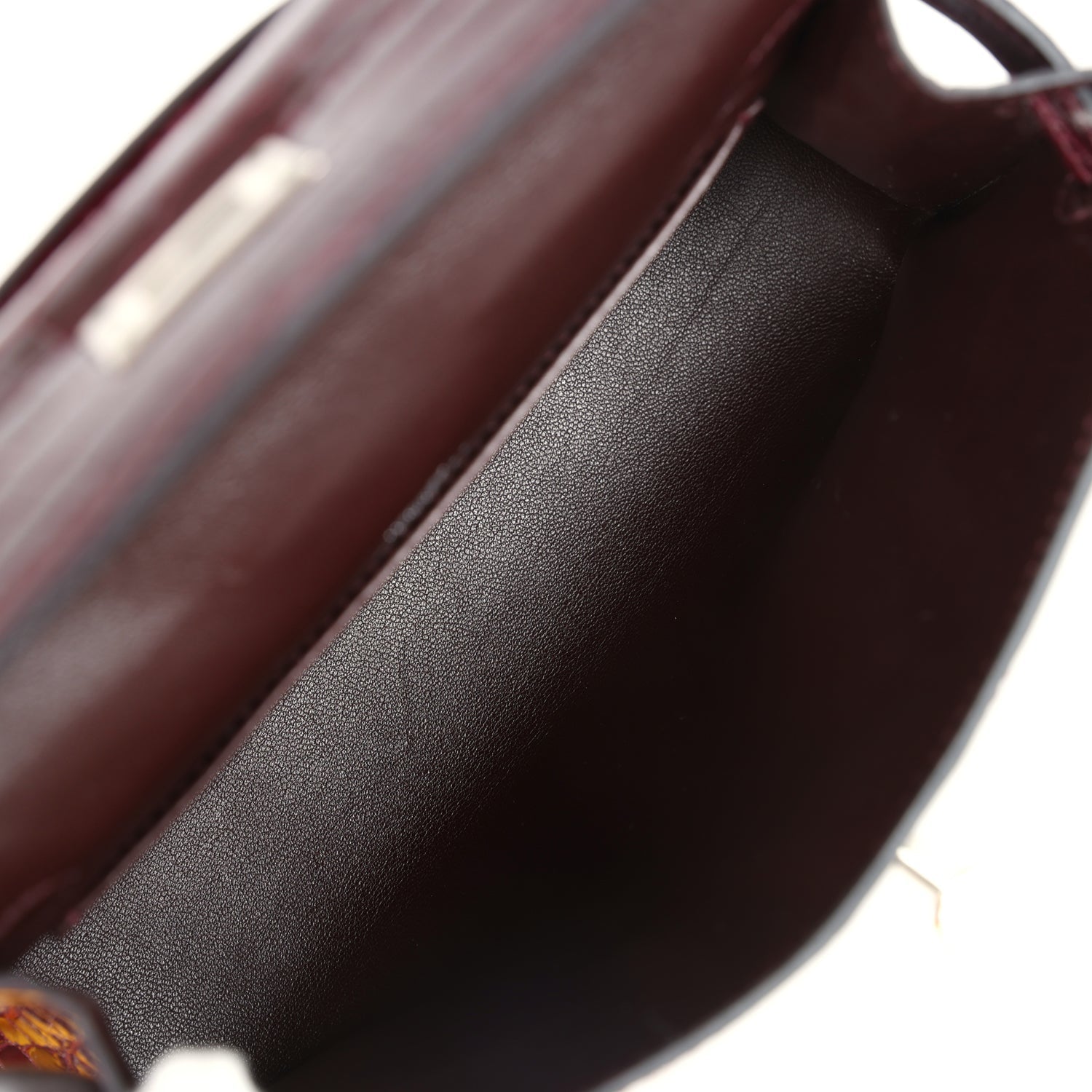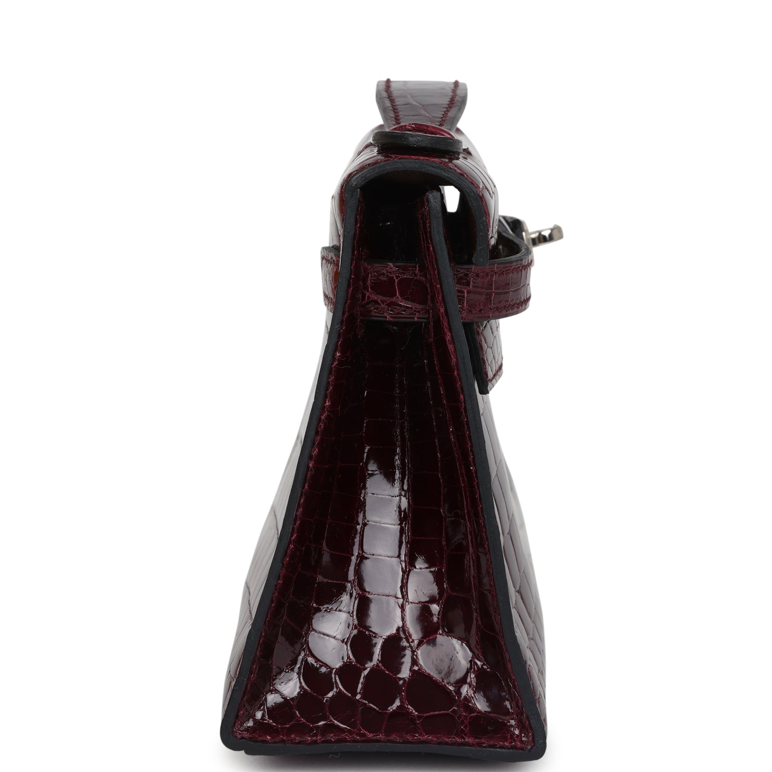 Hermes Kelly Pochette Bordeaux Shiny Niloticus Crocodile Palladium Hardware