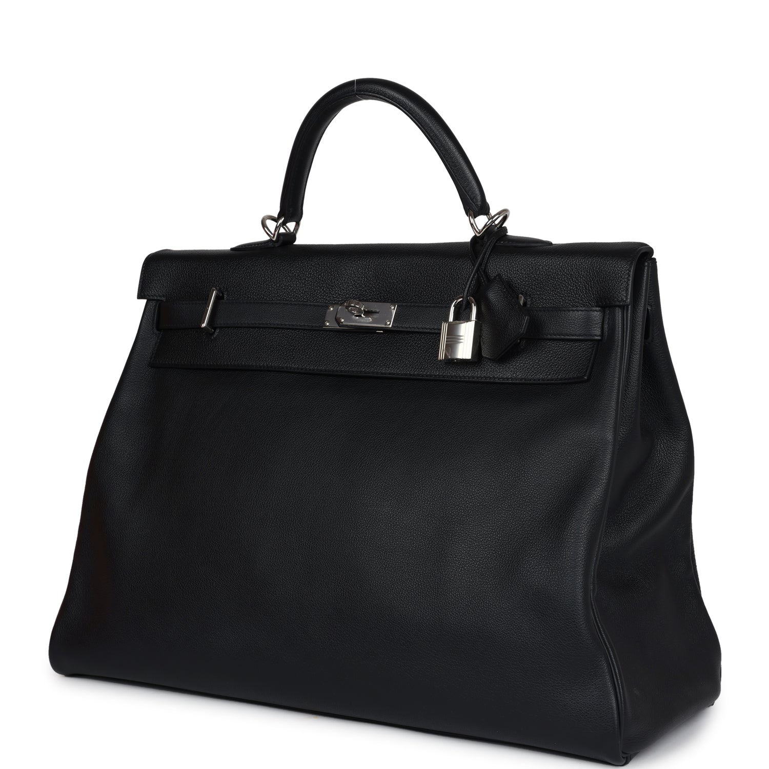 Hermes Kelly Voyage 50 Black Evercolor Palladium Hardware