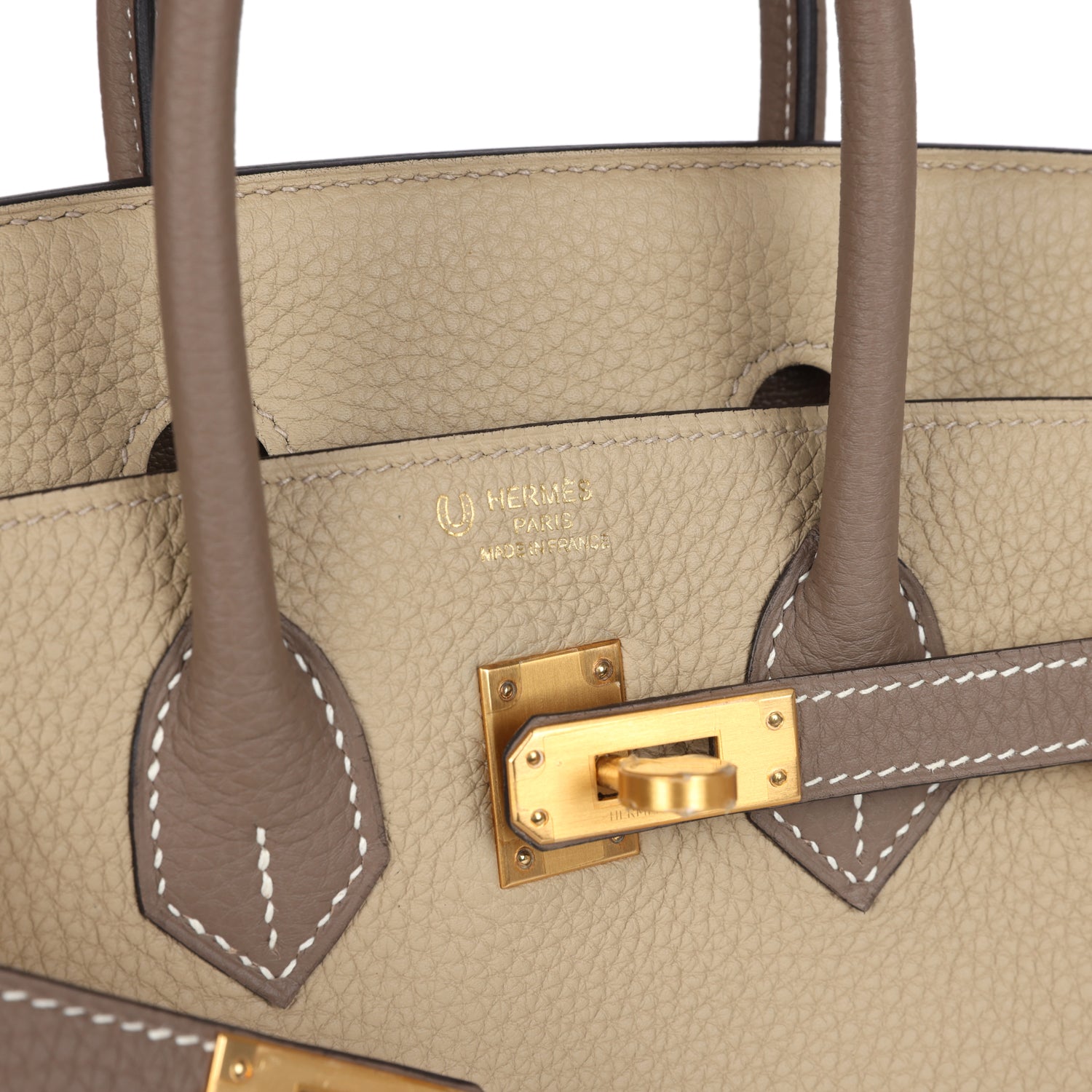 Hermes Special Order (HSS) Birkin 25 Etoupe and Trench Togo Brushed Gold Hardware