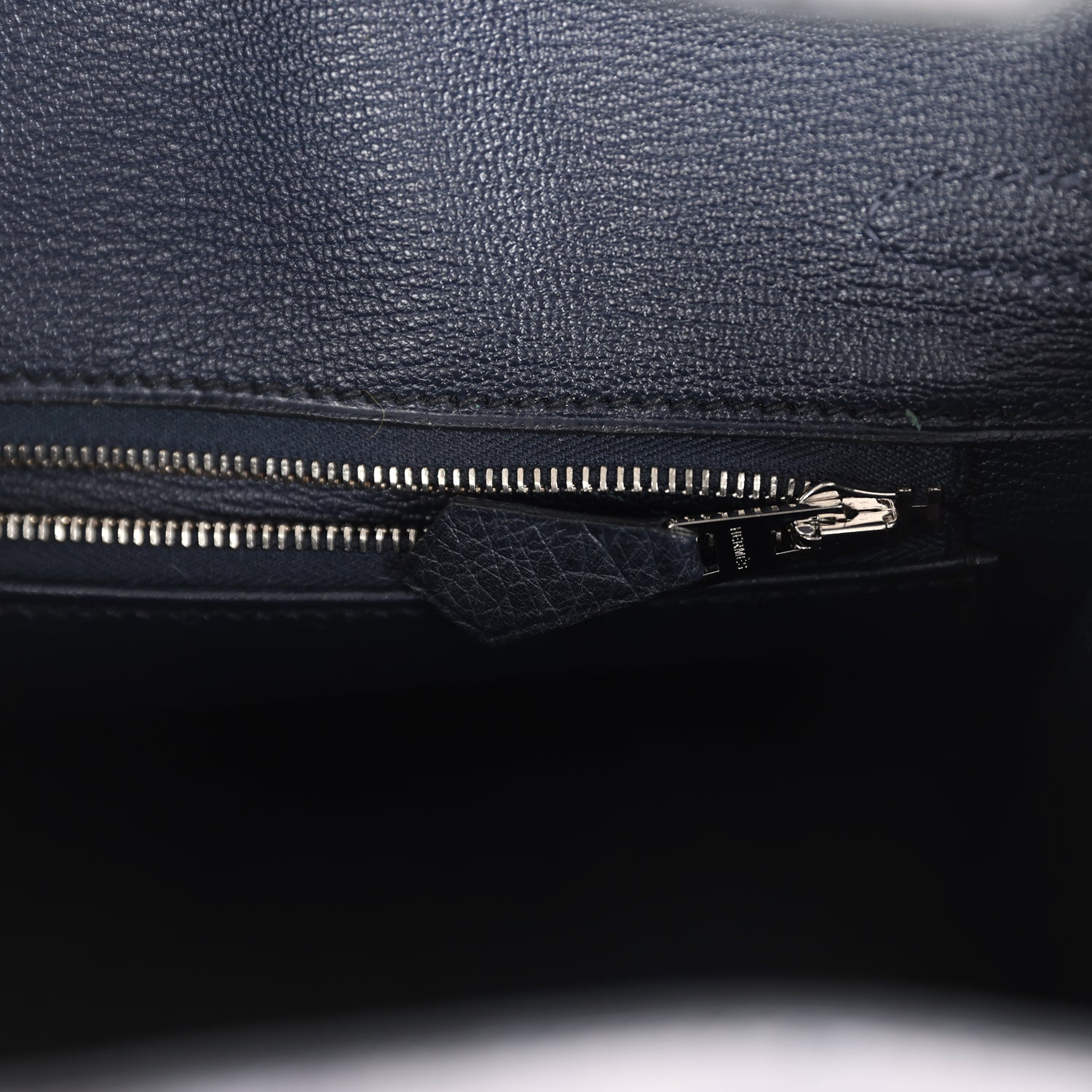 Hermes Special Order (HSS) Birkin 25 Gris Agate and Bleu Indigo Ostrich Brushed Palladium Hardware