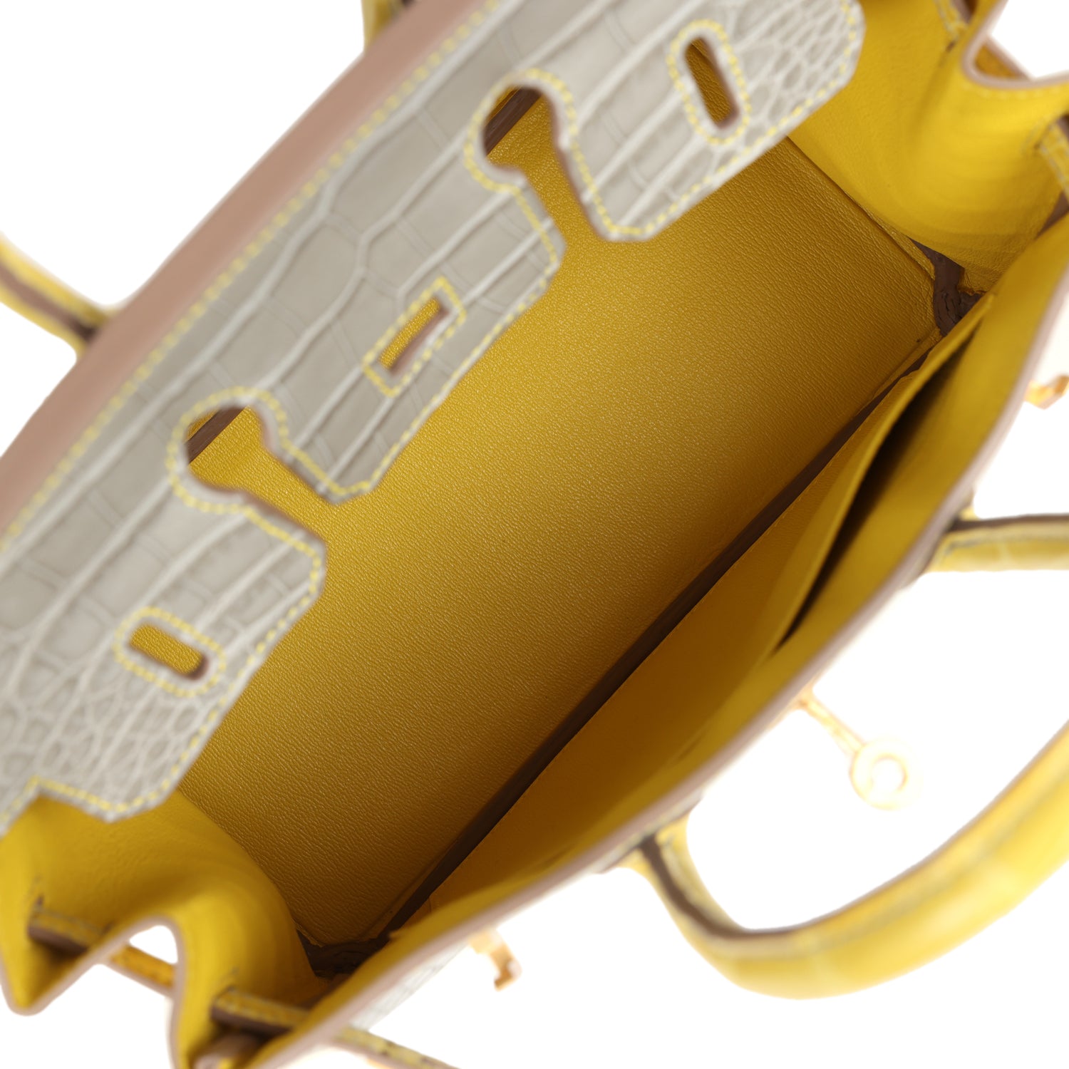 Hermes Special Order (HSS) Birkin 25 Gris Perle and Mimosa Matte Alligator Brushed Gold Hardware