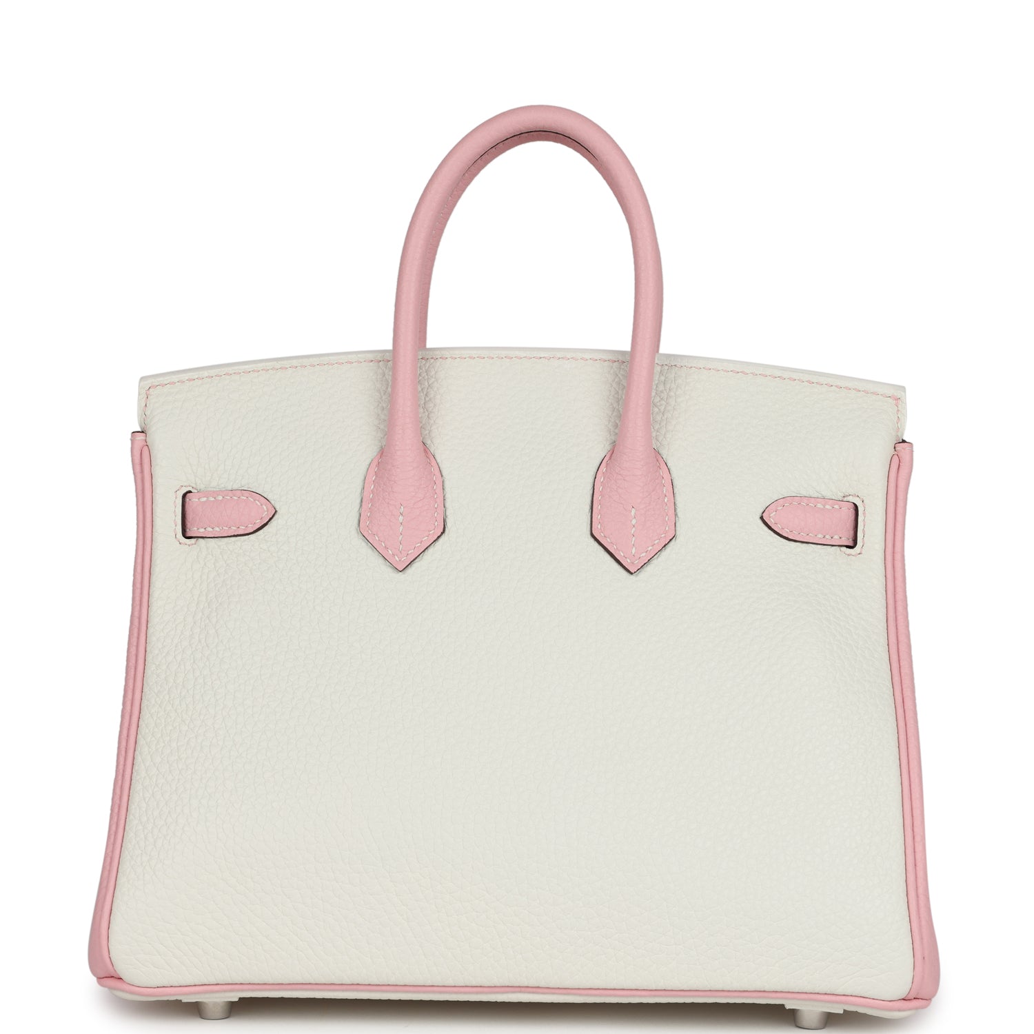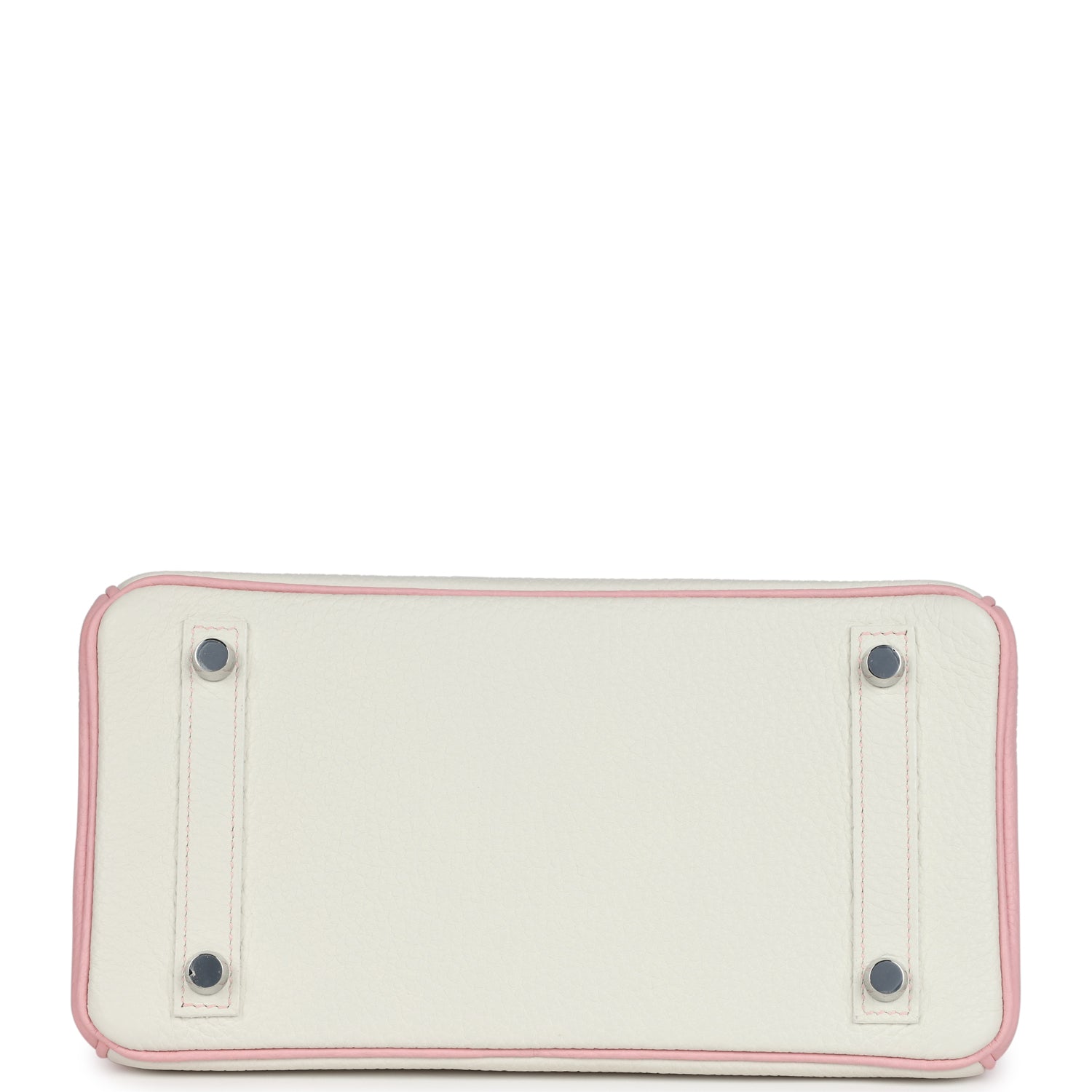 Hermes Special Order (HSS) Birkin 25 Rose Sakura and White Clemence Brushed Palladium Hardware