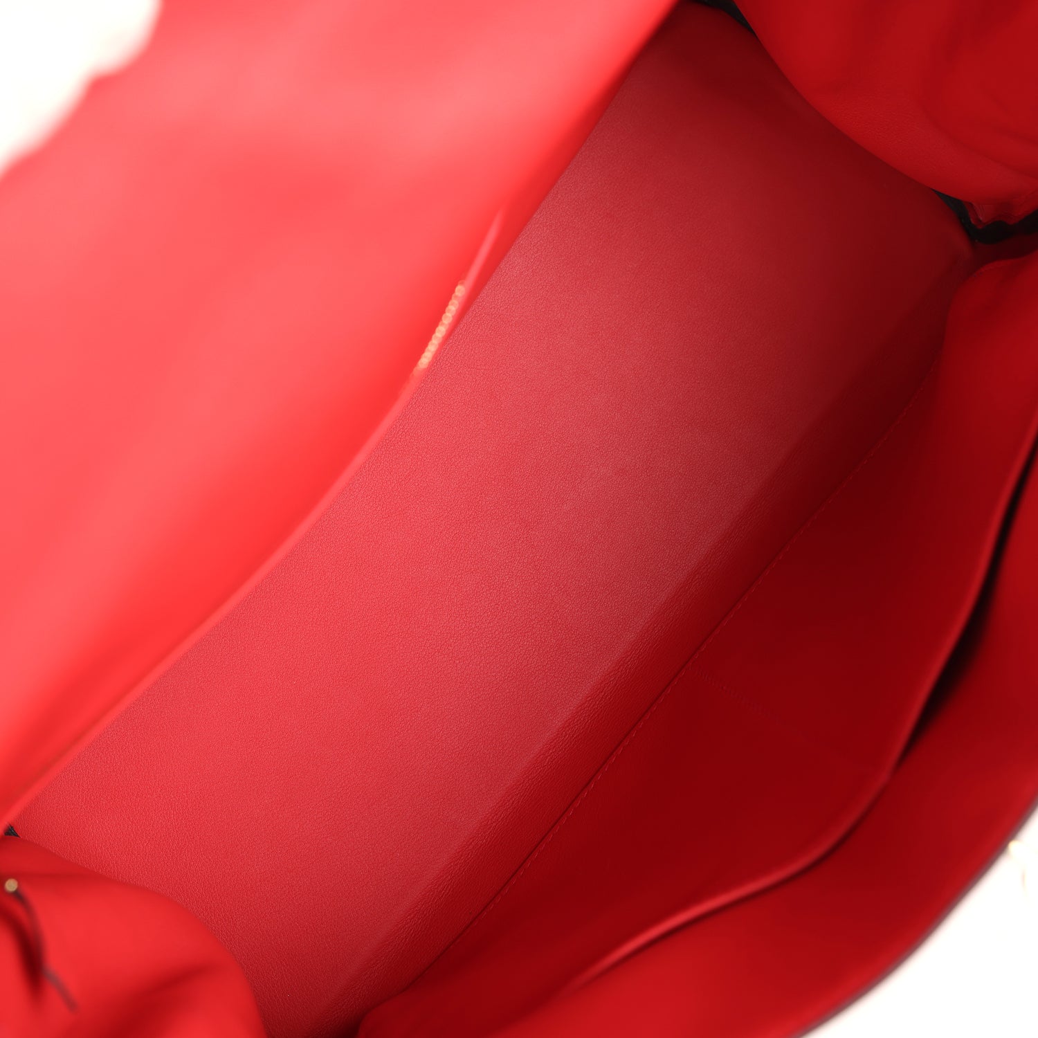 The interior is lined with Vermillon swift and features one zip pocket with an Hermes engraved pull and two open pockets on the opposite side.