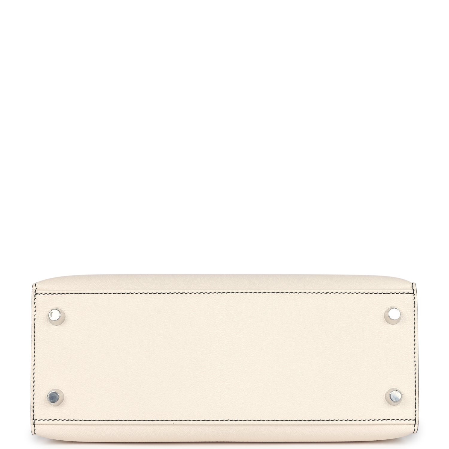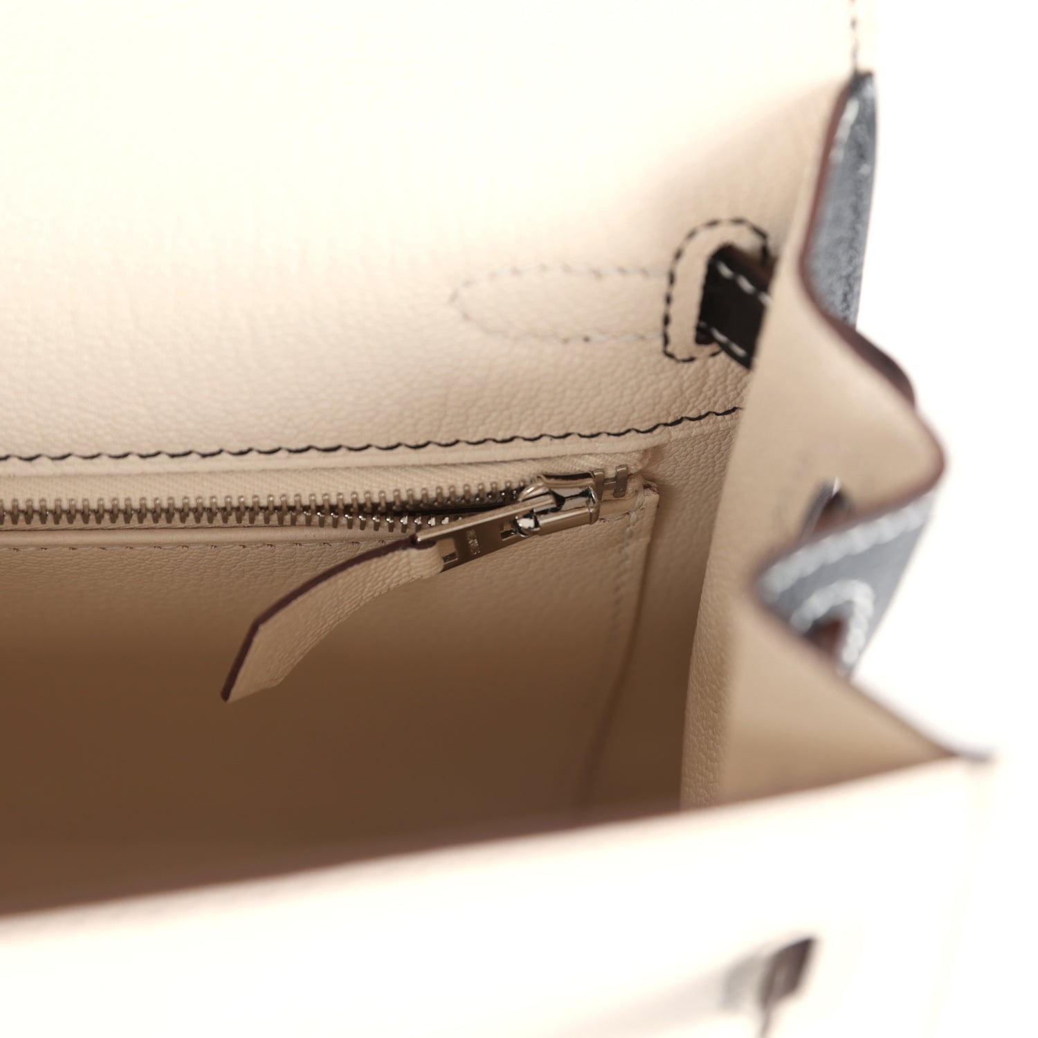Hermes Special Order (HSS) Kelly Sellier 25 Nata and Black Chevre Mysore Brushed Palladium Hardware