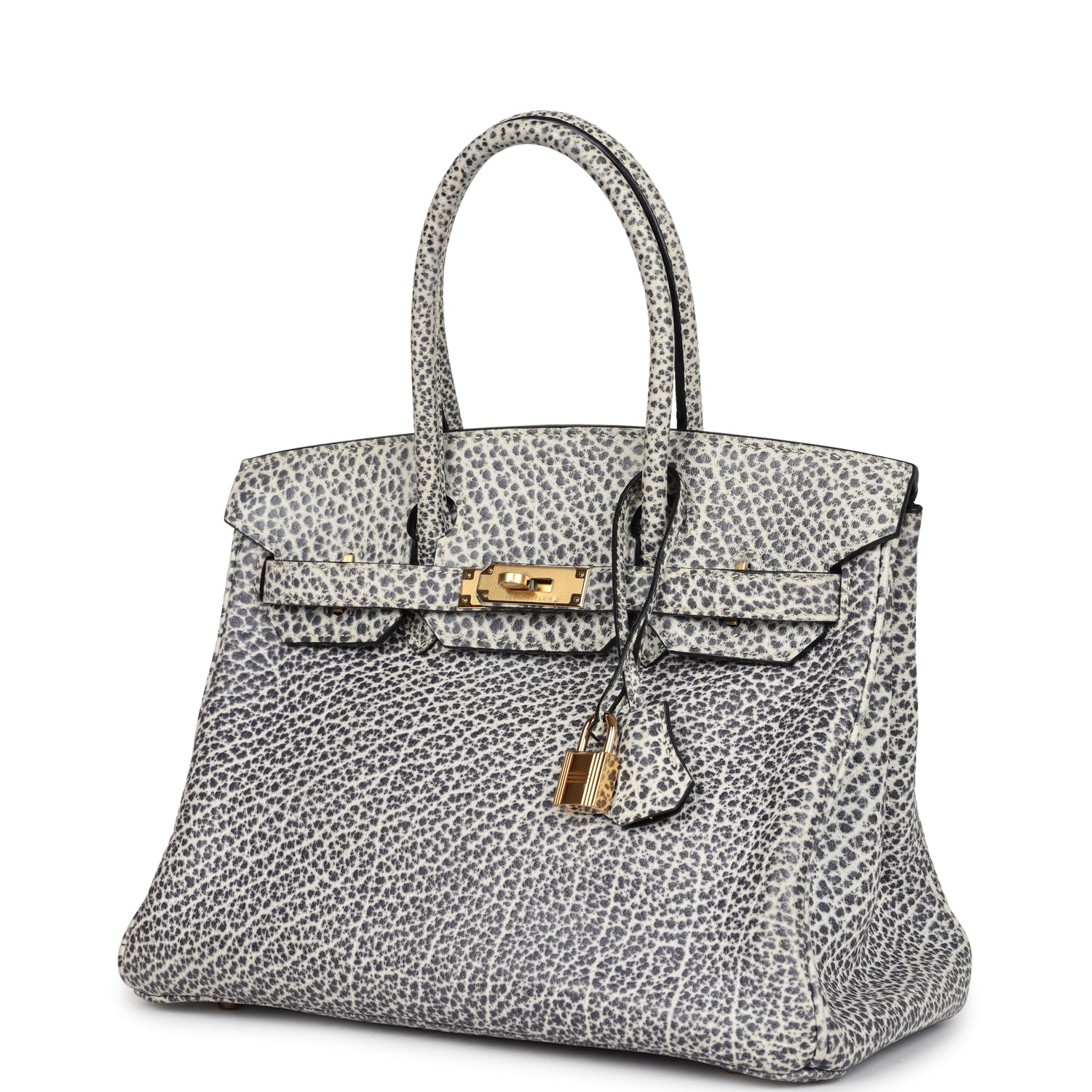 Vintage Hermes Birkin 30 White Dalmatian Buffalo Gold Hardware