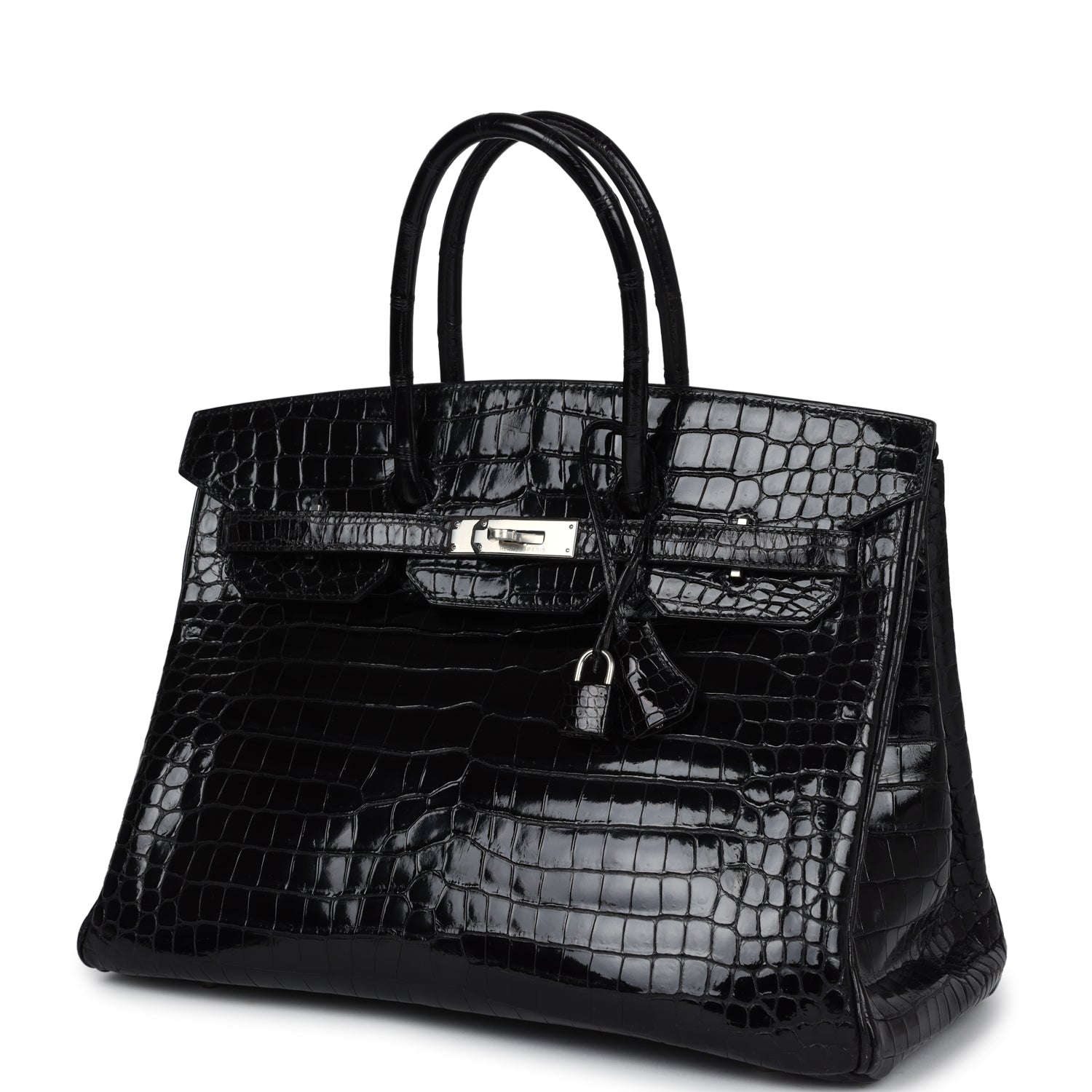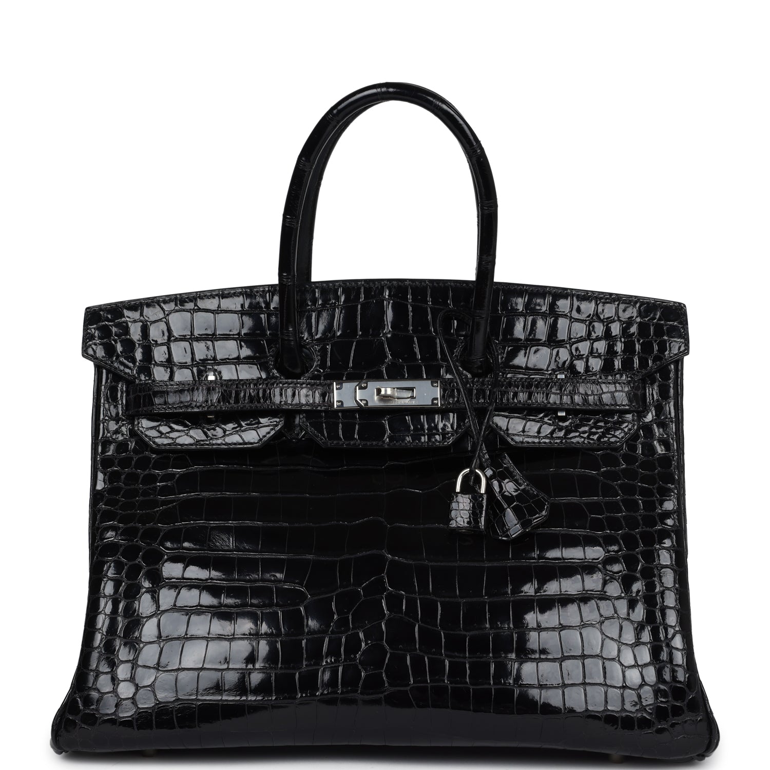 Vintage Hermes Birkin 35 Black Shiny Porosus Crocodile Palladium Hardware
