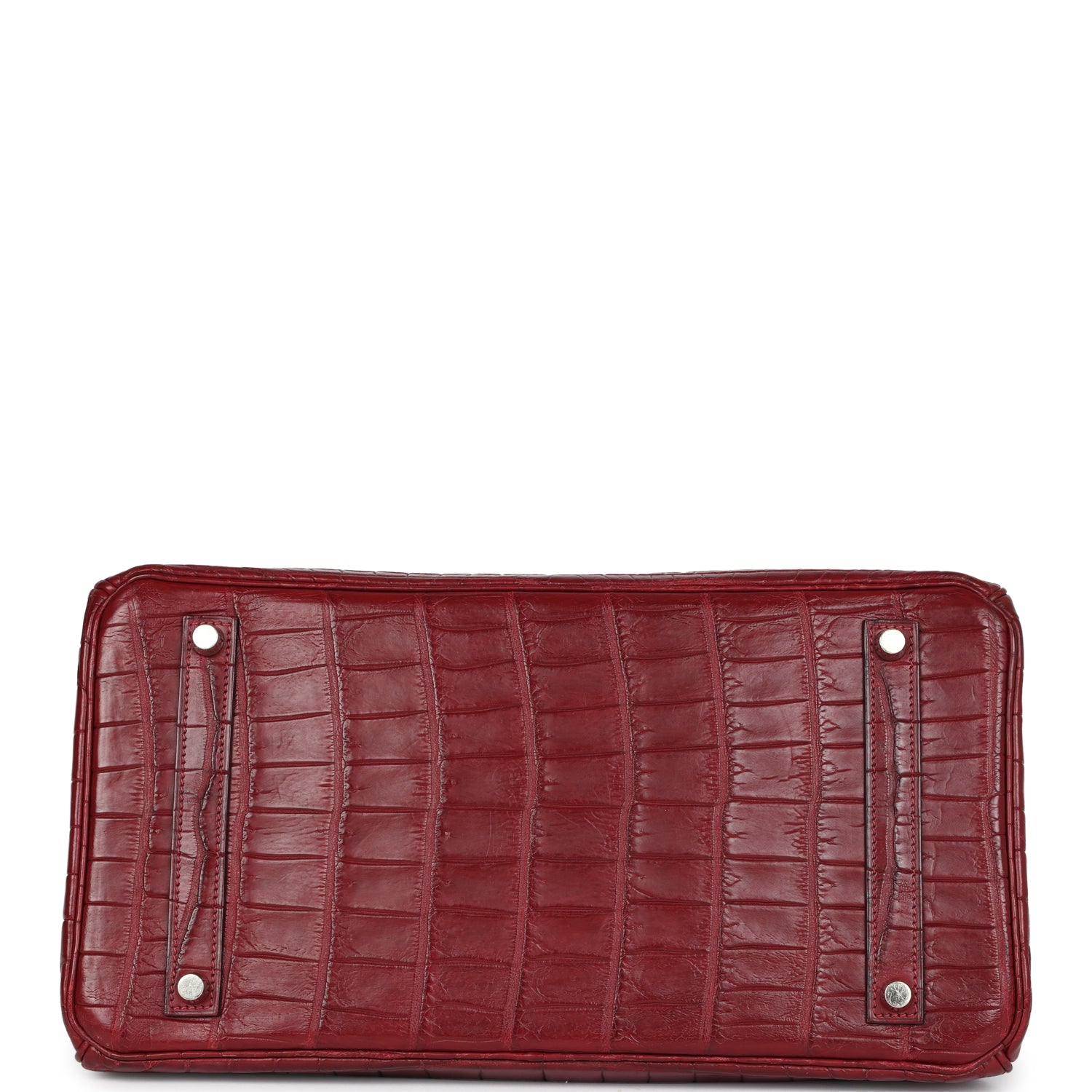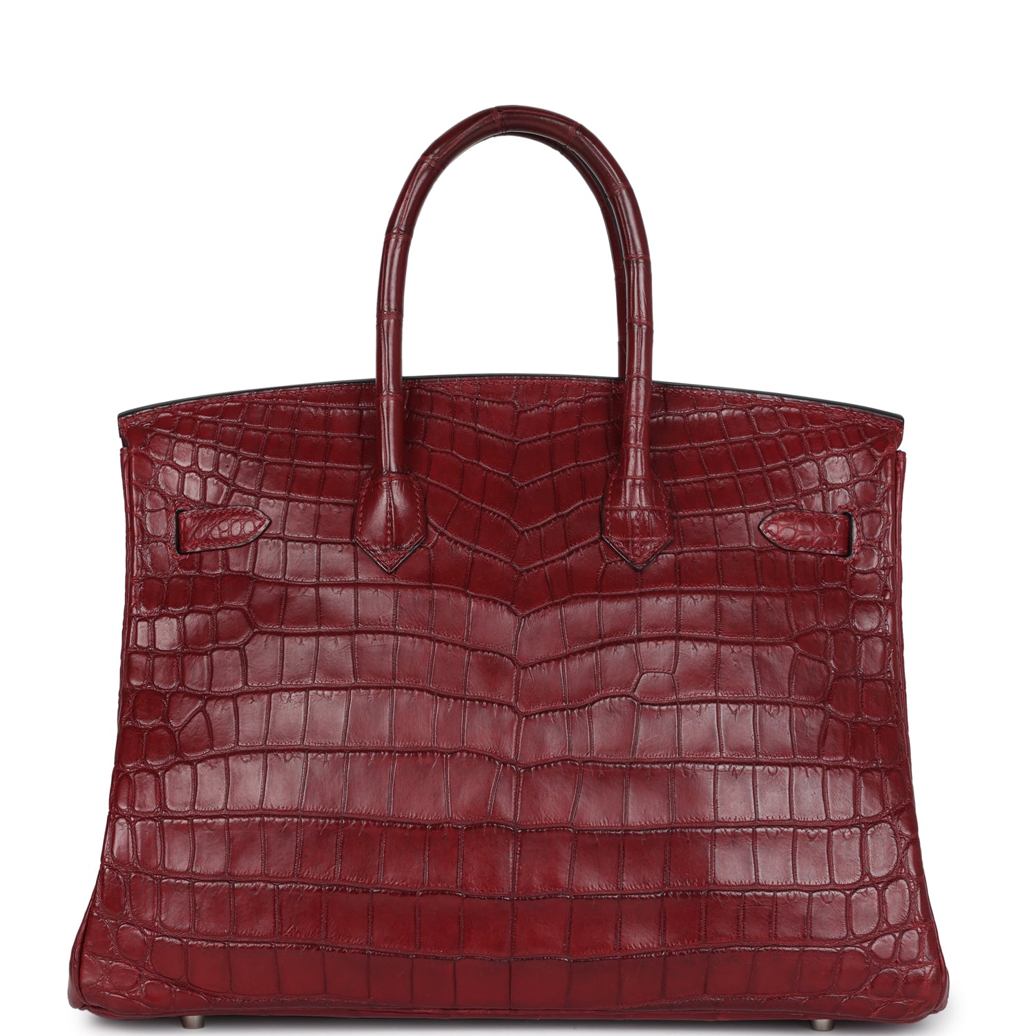 Vintage Hermes Travel Birkin 35 Rouge H Niloticus Crocodile Brushed Palladium Hardware
